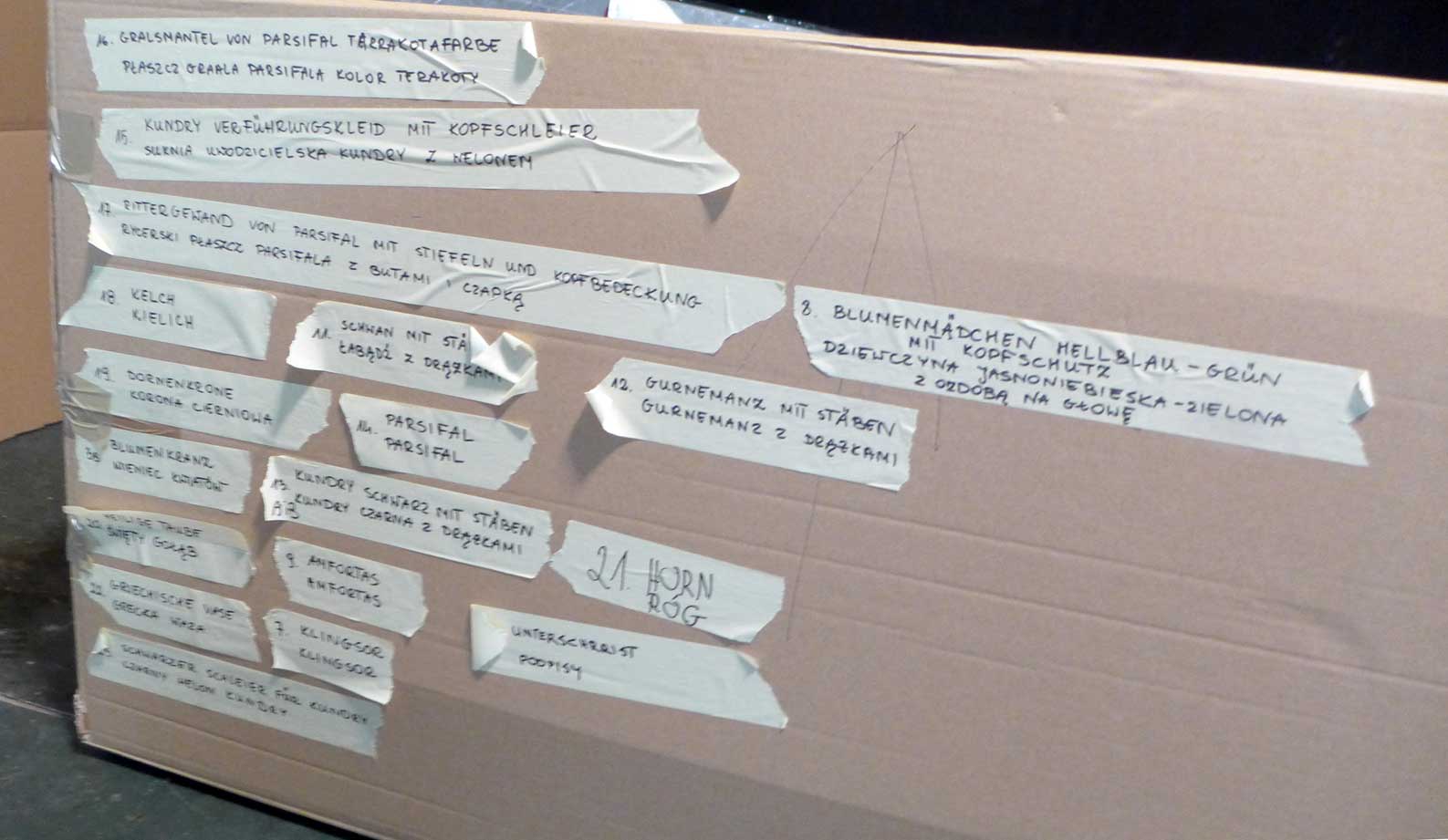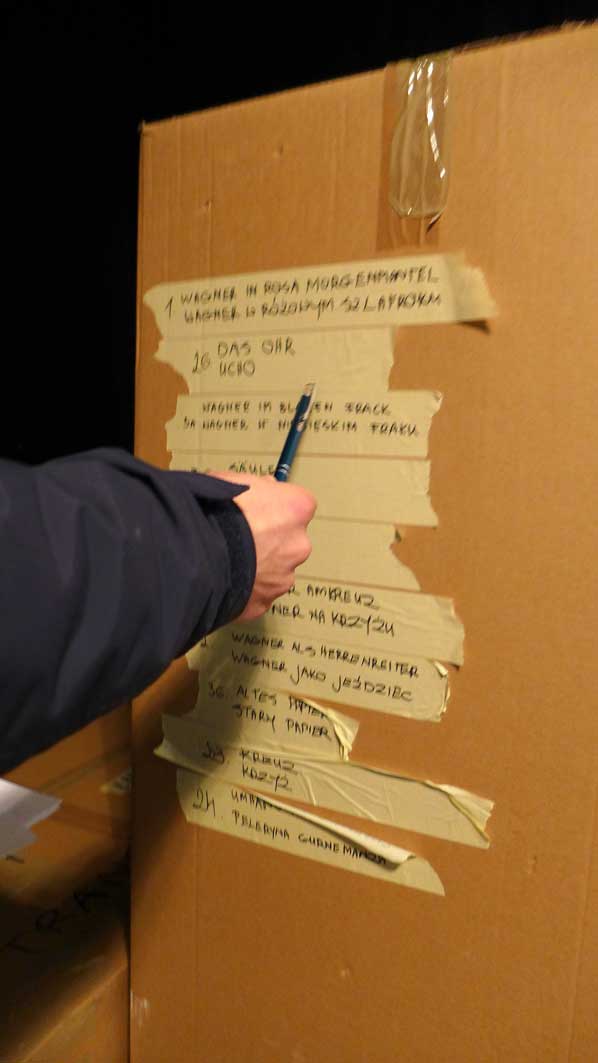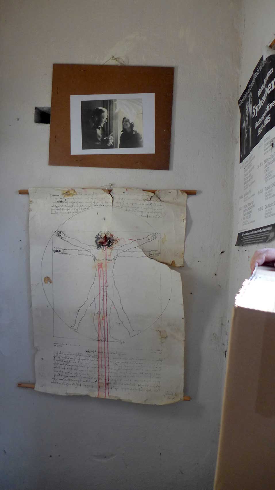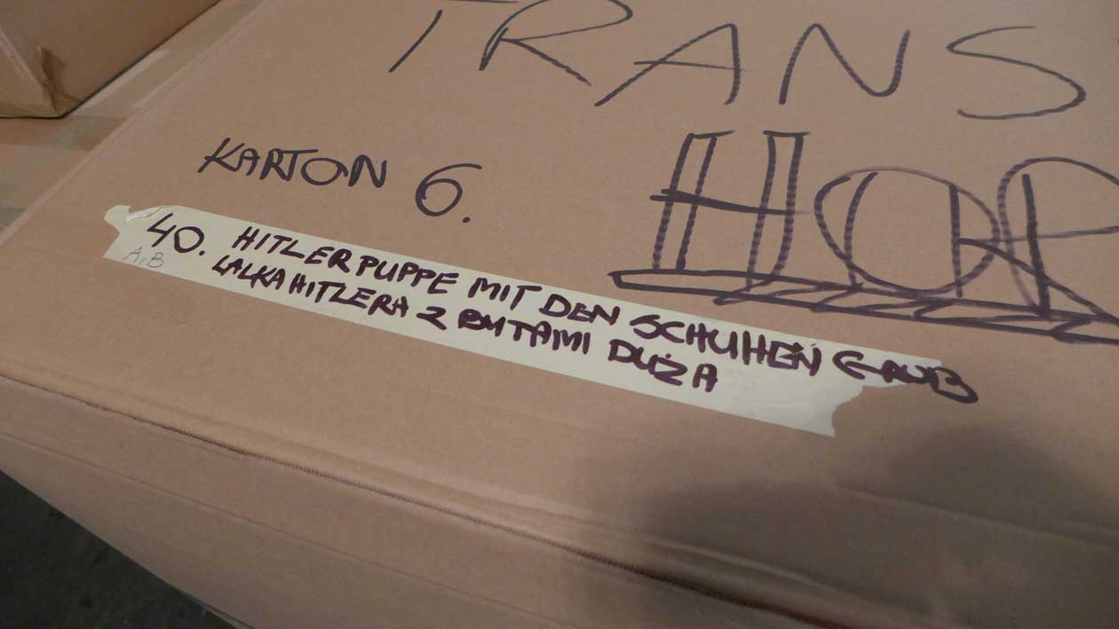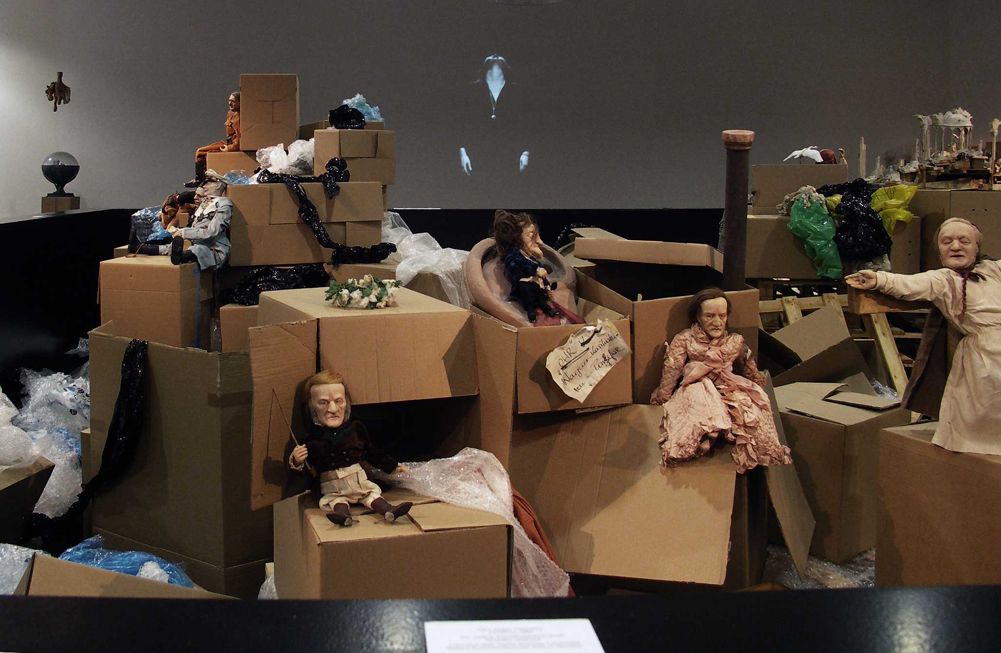 N. mit zugemauerten Türen und Fenstern in Paris, erster Auftritt als Installation im Centre Pompidou , nun als Tapeten für die Puppen von Hitler bis Richard Wagner und Parsifal