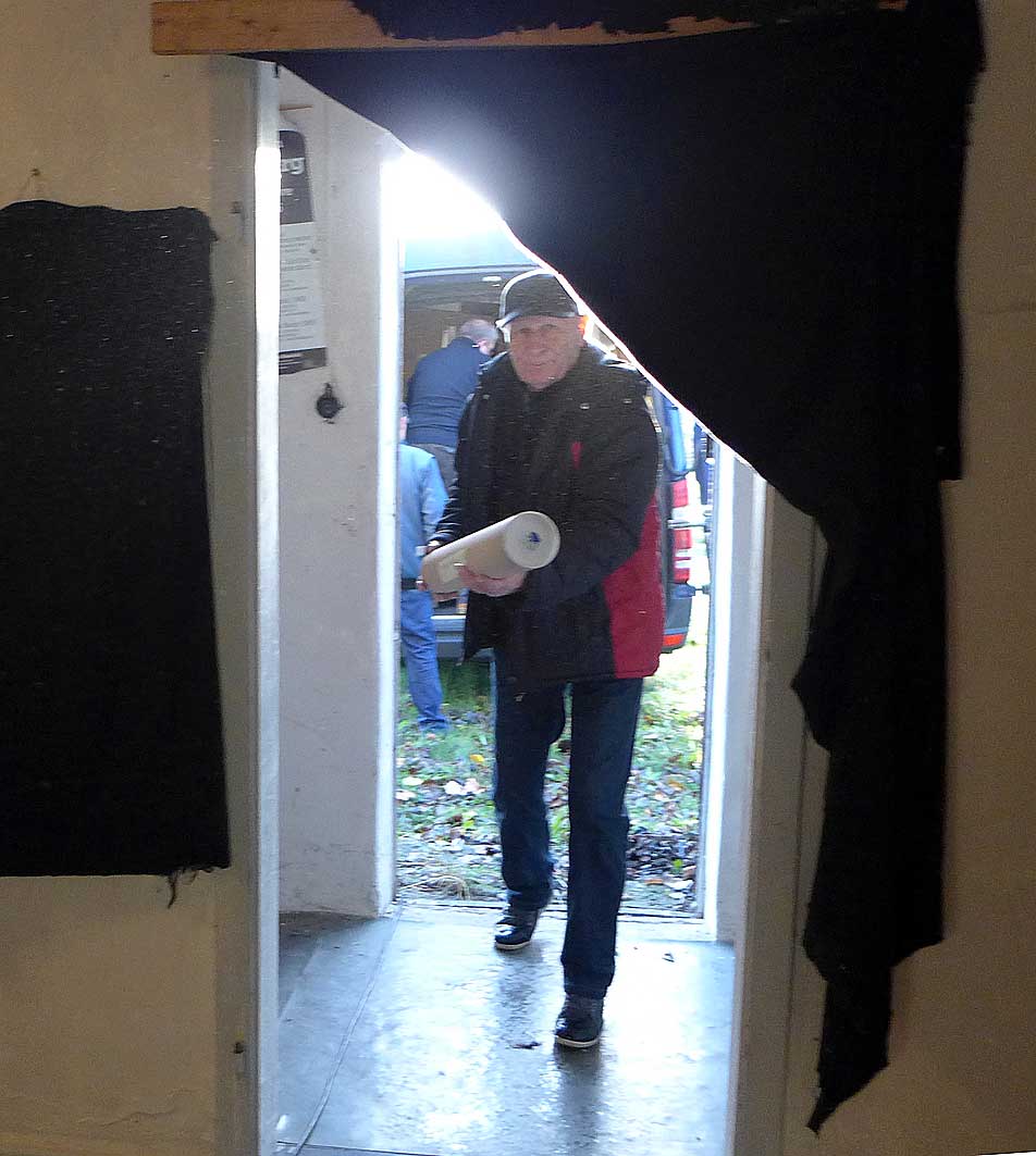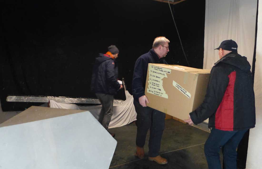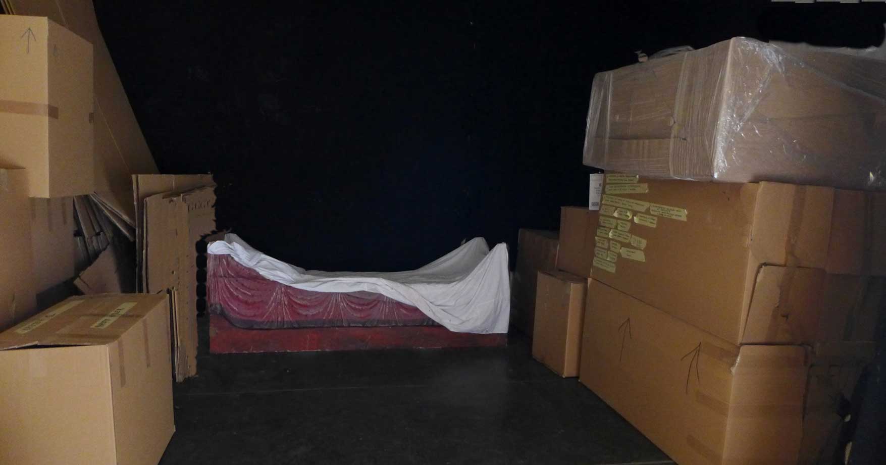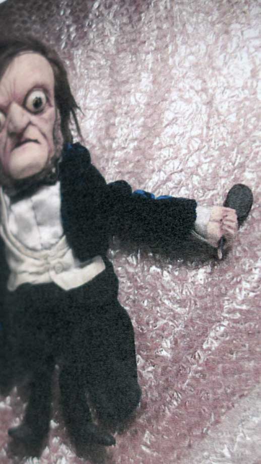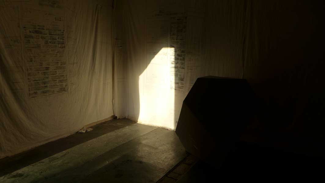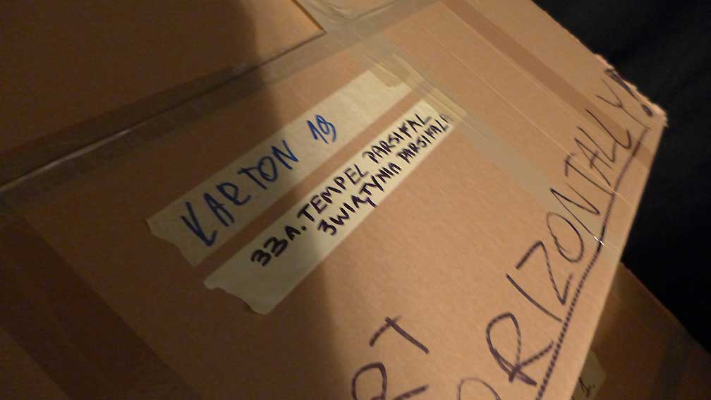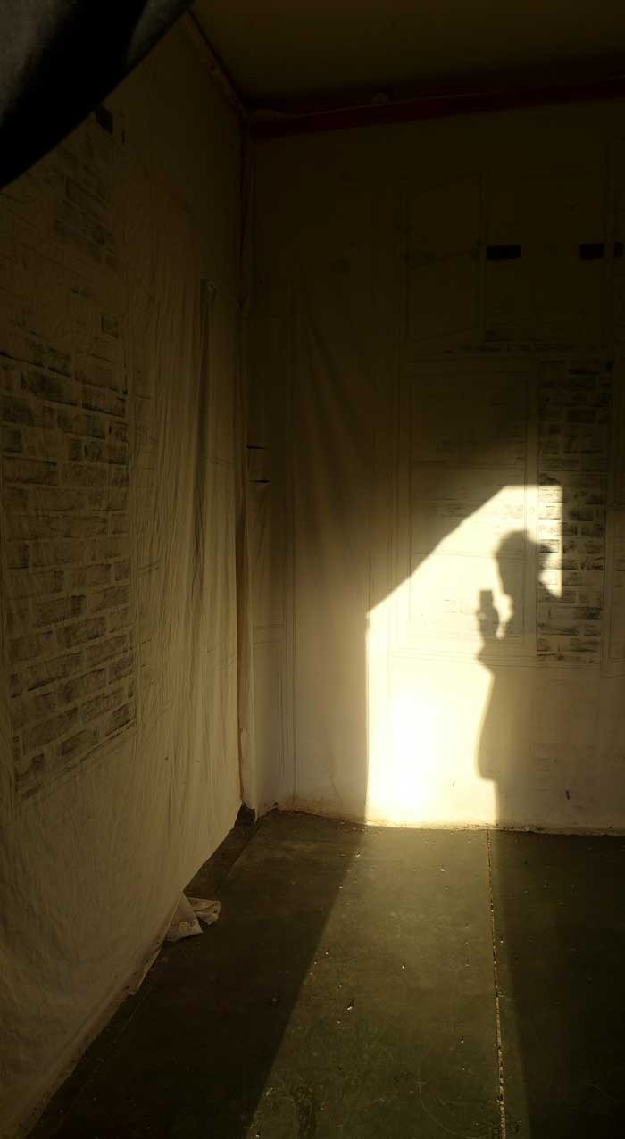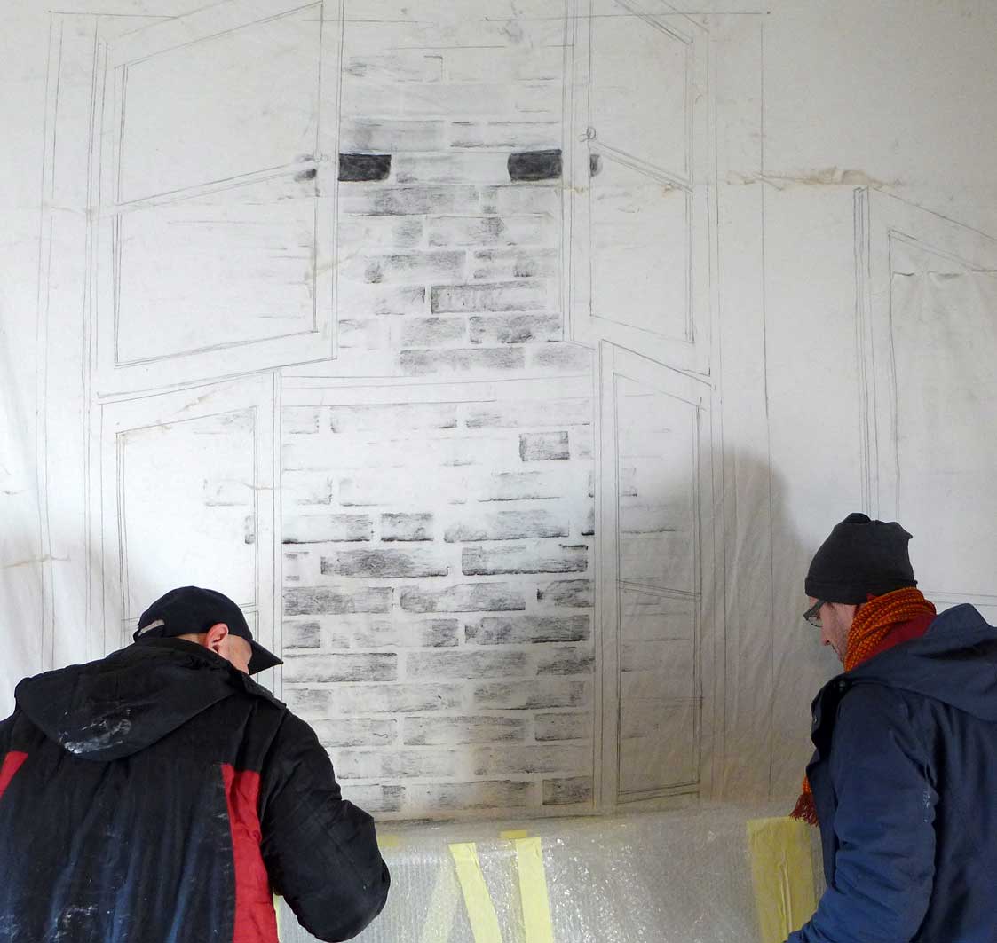 N. mit zugemauerten Türen und Fenstern in Paris, erster Auftritt als Installation im Centre Pompidou , nun als Tapeten für die Puppen von Hitler bis Richard Wagner und Parsifal