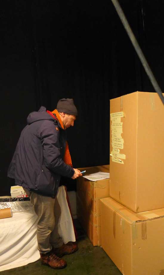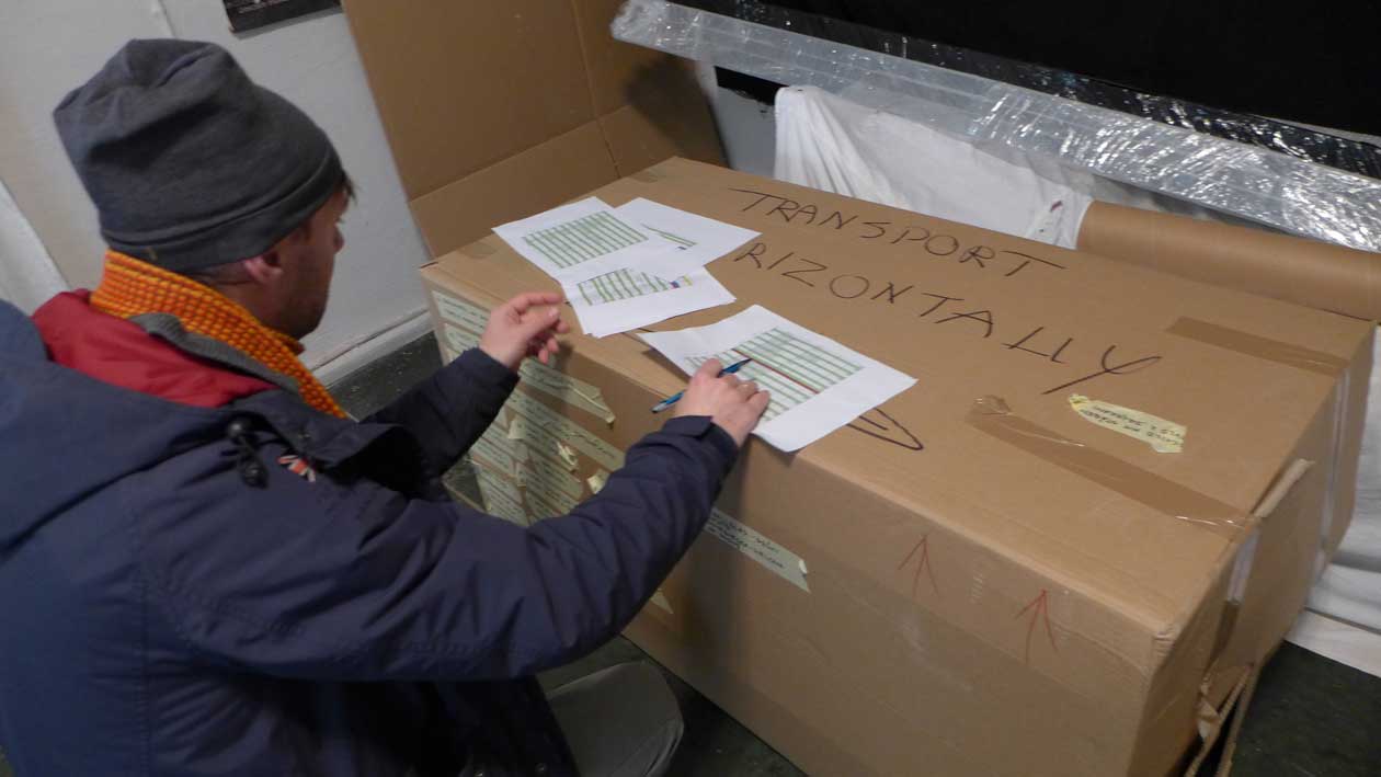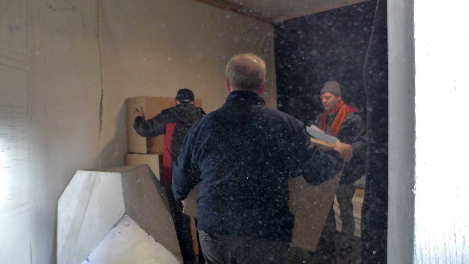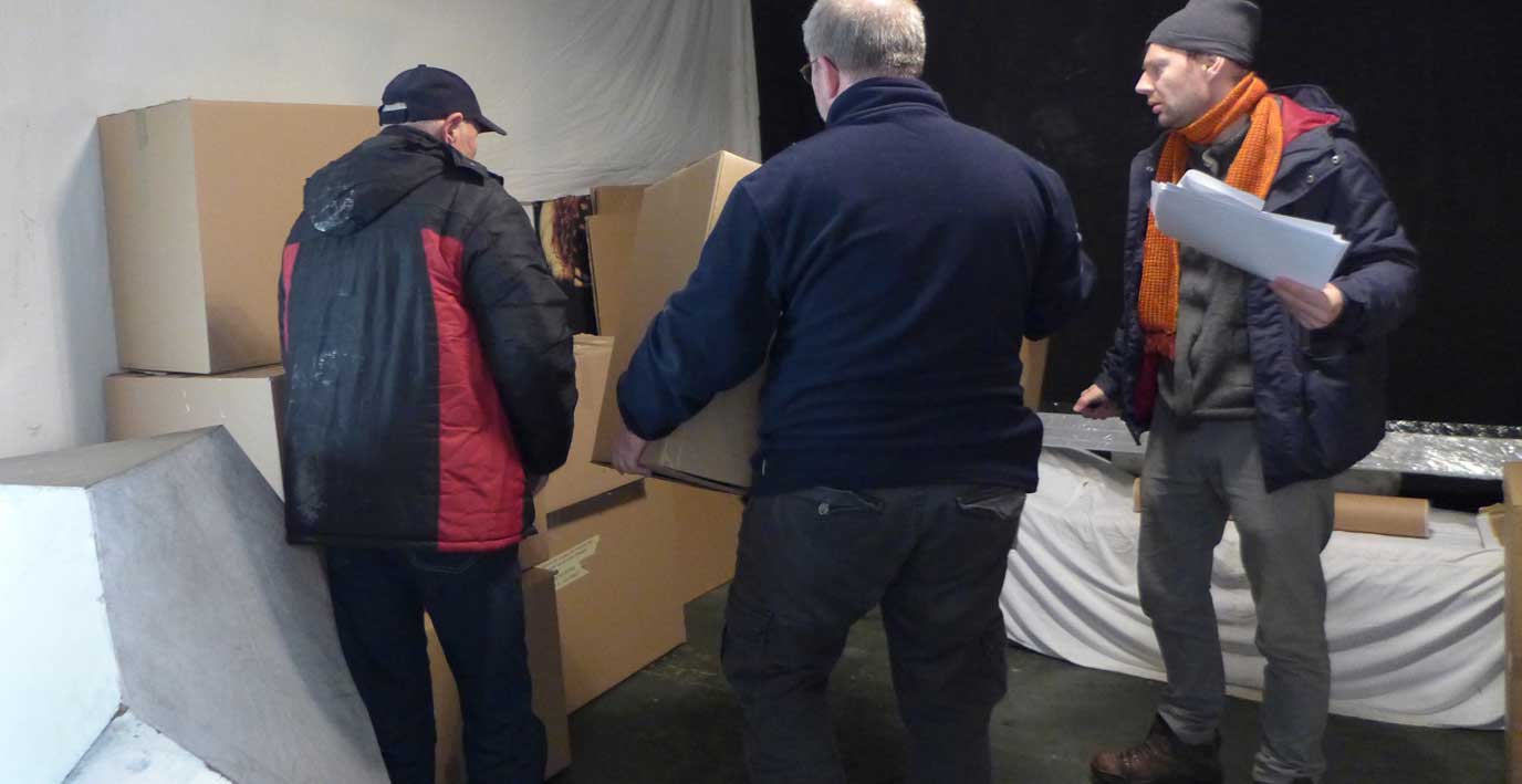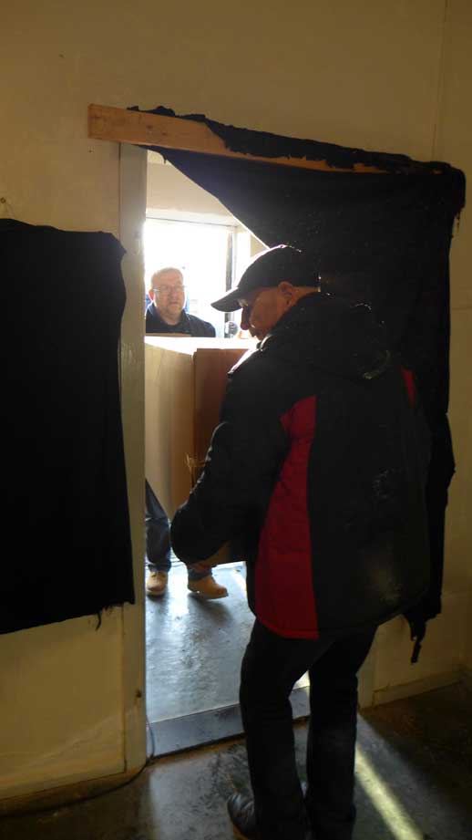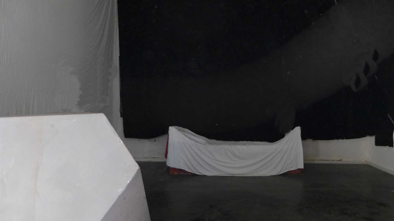 N. mit zugemauerten Türen und Fenstern in Paris, erster Auftritt als Installation im Centre Pompidou , nun als Tapeten für die Puppen von Hitler bis Richard Wagner und Parsifal