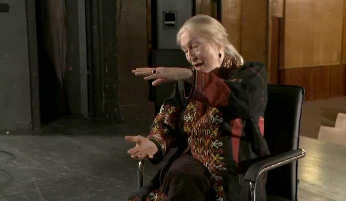 Das Gespräch zwischen Nele Hertling und Edith Clever wo sie zum erstenmal über ihre Arbeit an den Monologen spricht, enthält ein Zitat zur Fragen des Theaters, und der von ihr behaupteten Höhe, indem sie auf ein Beispiel aus dem Sport und einen Artikel in der ZEITverweist>>>