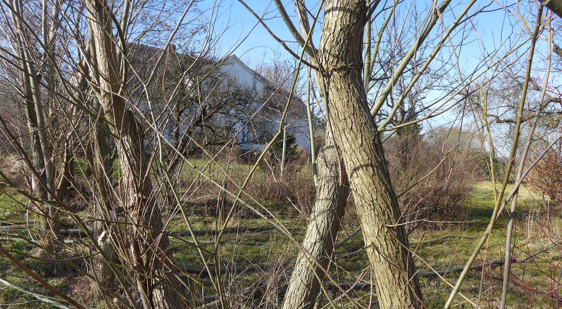 hin und her gehen die Blicke und rundum Häuser wie früher nicht aber im zarten Licht warum nicht. Sorgsam verteilt die Sträucher und Bäume dass es hilft zu verbergen und zu öffnen, des Gehens guter Pfade treue Spur.