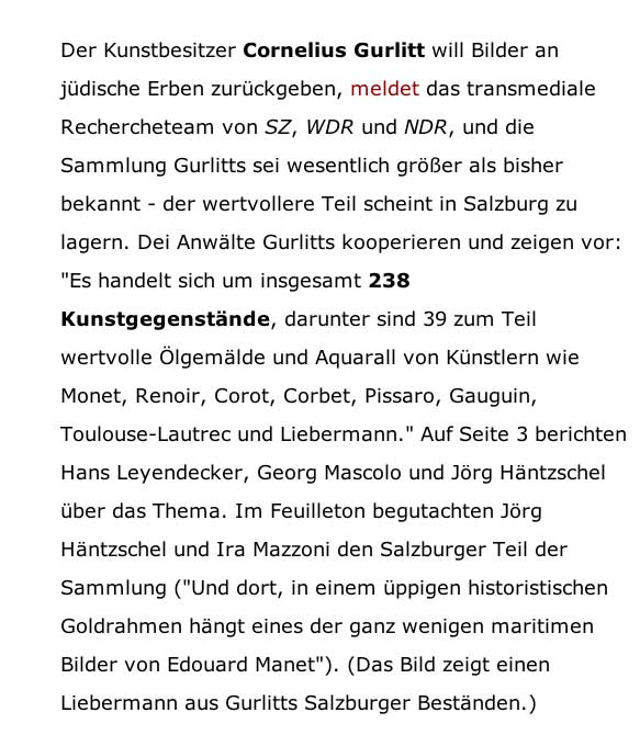 Denn anders als gesagt wird, hat dies nicht Gurlitt, also der Besitzer der Bilder erklärt, gewollt.