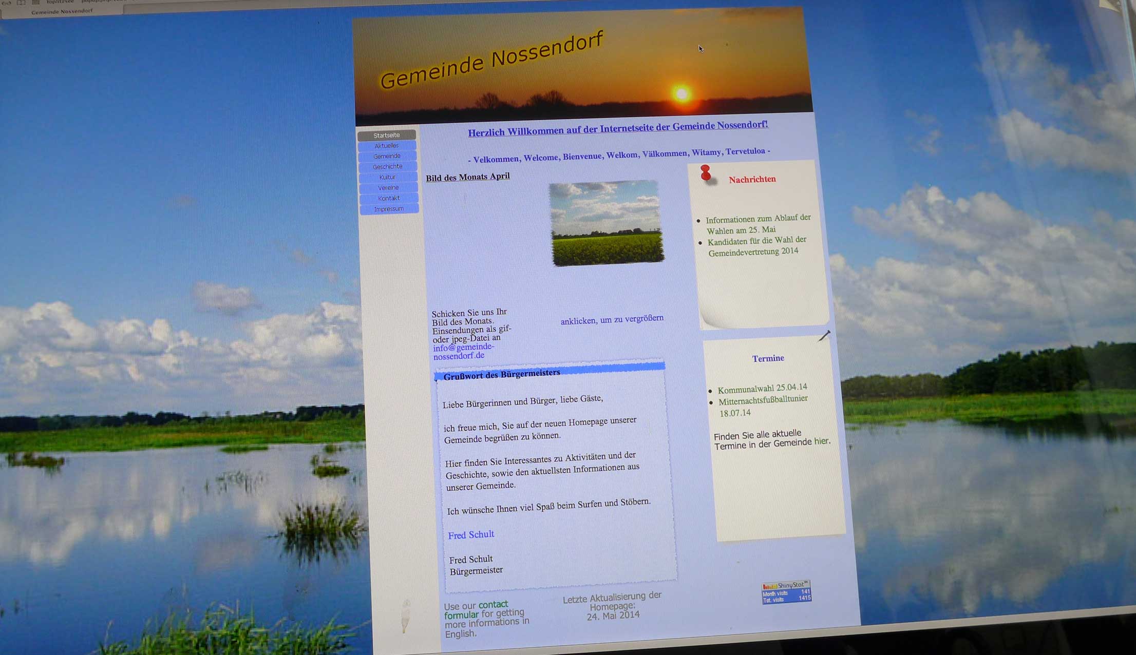 6 H), die so aussieht: Mit nichtaktuellen Namen (Bürgermeister Schult nicht mehr im Amt und Hinweisen auf die angekündigte, aber inzwischen abgelaufene Kommunalwahl mit Ergebnissen, die hier nicht stehen. Aktuelles sollte da nicht stehen oder nach Aktualität angepasst sein. Sonst wird auch anderes unglaubürdig. Der Besucher weiss mehr.