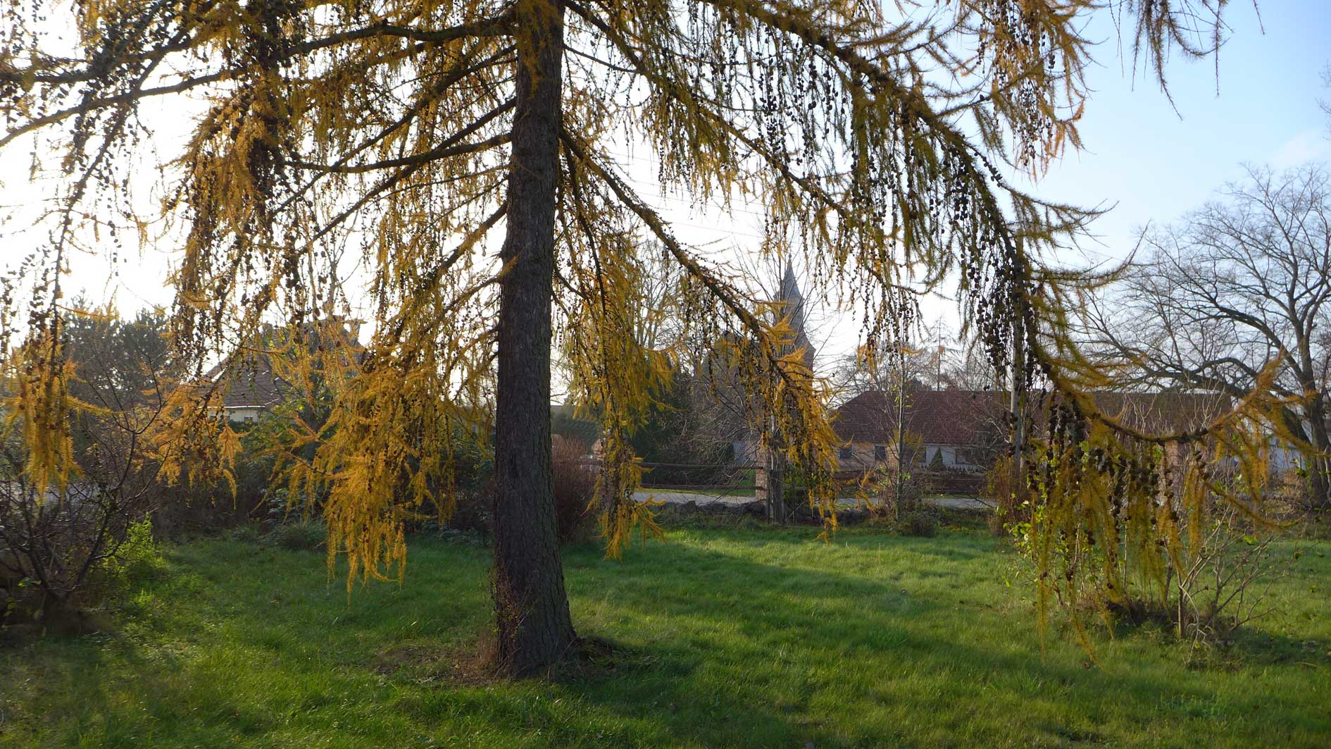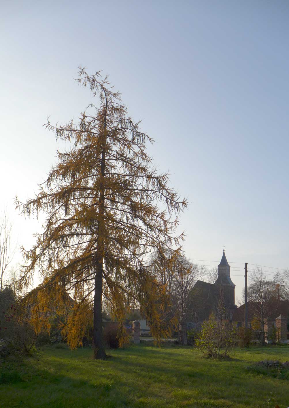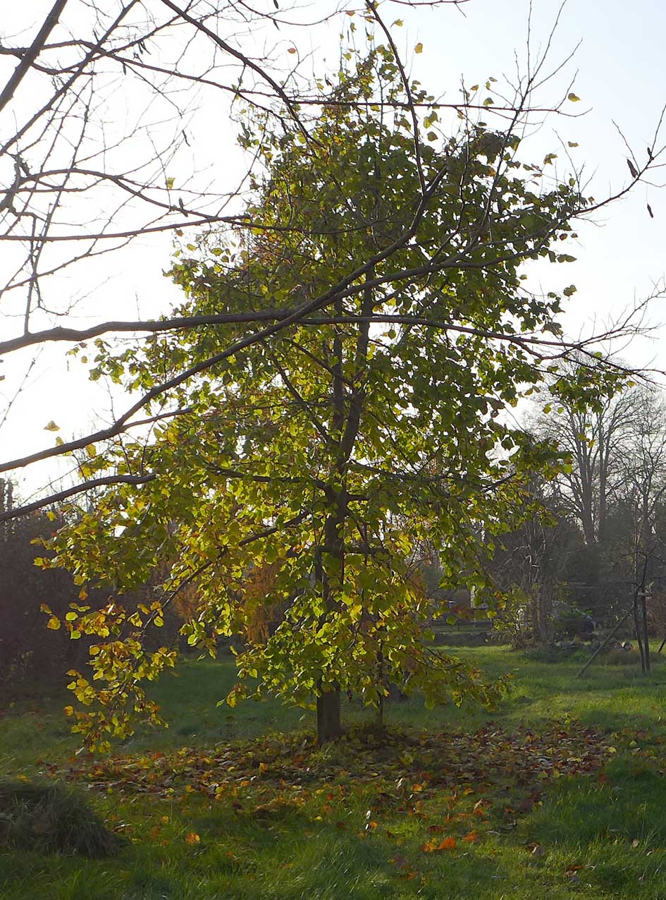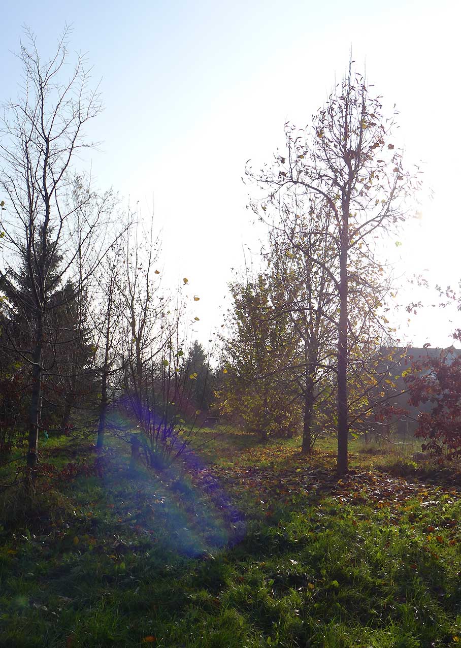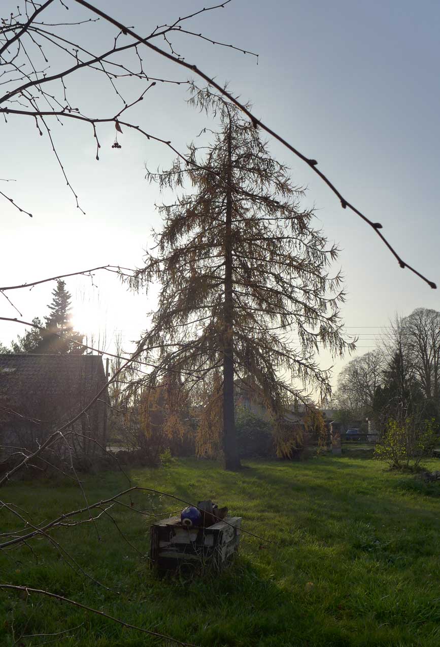 nur diese zwei haben noch sommerliche Blätter und Nadeln, wo sonst rundum schon alles kahl ist. Die Linde aus deinem Stab, gebrochen und schon entfernt nochmal versucht und die Lärche geblieben vom Konsum der da stand dazuwischen zum Gedächtnis