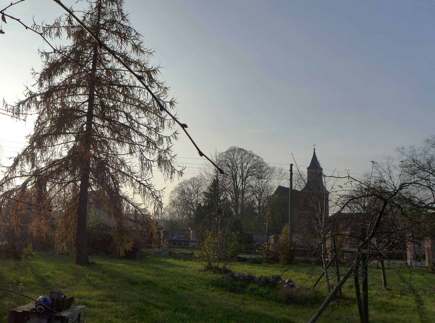 und warum der Turm der Kirche wegmusste, nur 3 Balken morsch, die Leute vom Ploog, dem Schmied erzählten, die Handwerker: nur 3 Balken zu ersetzen gewesen. Aber aller erzählen, der Turm sei umgebrochen...