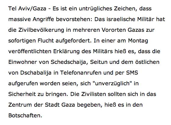 Tel Aviv (dpa) Ð Die israelische Armee hat Ziele in Gaza massiv angegriffen. Nach Augenzeugenangaben wurde Gaza mit Artillerie, von Kriegsschiffen und aus der Luft bombardiert. Nach Fernsehberichten erhellte Leuchtmunition den Nachthimmel und Drohnen sondierten das Terrain. Im zentralen und sŸdlichen Gazastreifen wurden am frŸhen Dienstag nach palŠstinensischen Angaben 16 Menschen getštet. 50 seien verletzt worden, berichteten SanitŠter und Augenzeugen. In Tel Aviv gab es am frŸhen Morgen Luftalarm. In der Region Tel Aviv seien mehrere Explosionen zu hšren gewesen. berichteten israelische Medien.