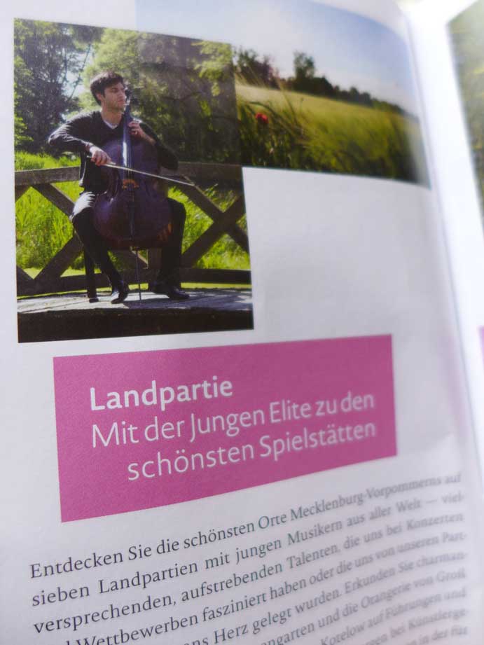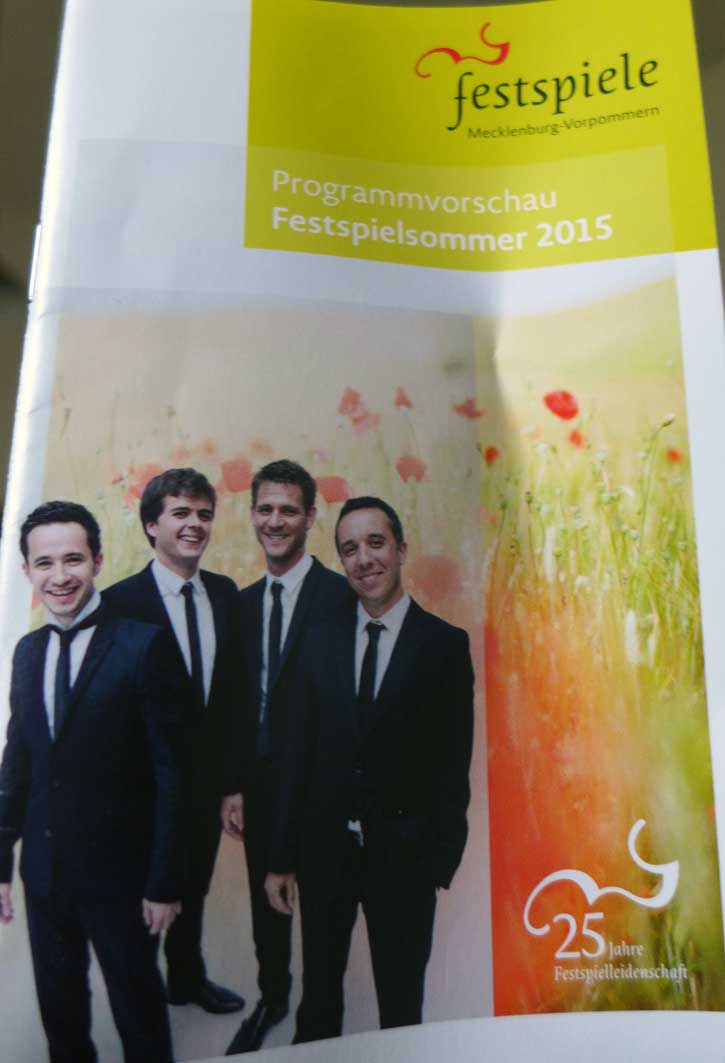 Aus Schwerin das Programm der Festspiele für das nächste Jahr an den verschiedenen Orten des Landes. Auf ersten Blick erkennen wir viel Bewegung der Teilnehmer durch Landpartien und Kultur- Wanderungen, die Musik oft im Wechsel mit Texten der Schauspielrer und durch diskutierende Veranstaltungen der Vermittlungen unterbrochen, dass die bange Frage aufkommt, ob das wohl gutgeht. Denn das muss man können. Texte welche, wann und Reden ohne lästig zu werden, bevormundend und den Fluss der Töne und Sinne sprengend oder führend -wohin. von wem und für wen. Das riecht nach Kultur - Menagemen tund Dramaturgen-Schulen mit abzählbaren Präferenzen. Ohne Basis im Lande. Das ist neu. Alt sind die einschüchternden Einteilungen in Junge Elite oder Preisträger-Konzerte. Die Sommer sind auf dem Lande eine besondere Sache. Vorsicht, vorsicht. Sicher hat man gut aufgepasst,unsere Sprengungen der gewohnten Abläufen von reinem Musikprogramm des Vorfahrens und wieder Abfahren am Ende zu und mit anderen Formen der Texte und Projektionen oder Künste kam aus den Erfahrungen in 2 documentas und in Film und Theatern besonderer Art und aus der Herkunft des Landes historischer Prägungen auch der Land-Wirtschaft. Zuletzt mit Puppen für Kinder opder als Landpartien von Ort zu Ort. Essen und Leben auf diese Weise besonders einbezogen. Mit dokumentierten und jederzeit abrufbaten Internetseiten von 2010/11 neue Formen und Räume einer Kultur auf dem Lande probierend.