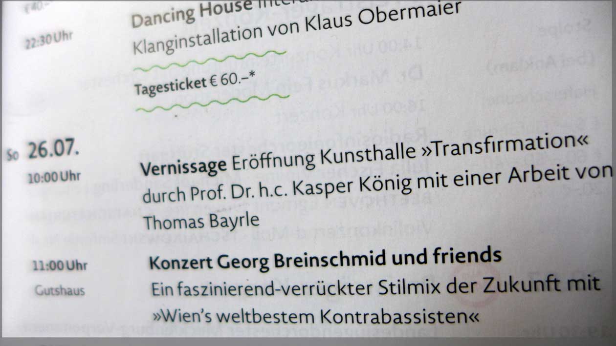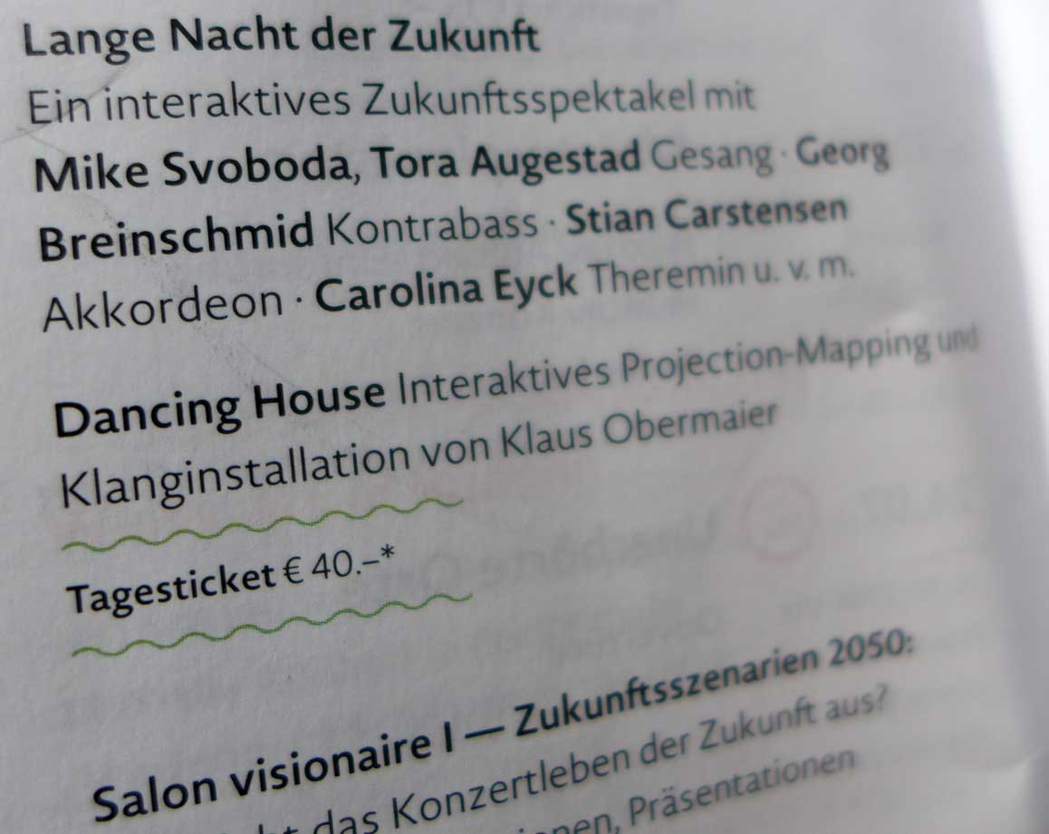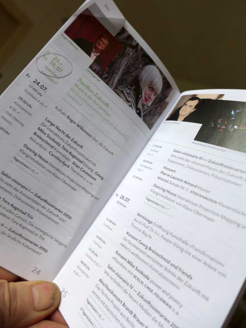 Auffallend im Programm für 2015 sind die 3 Tage in Landsdorf bei den Schäfers. Mit intelktluetueller - kopfiger Programmierung nach Curatoren Art nach Musik und an verschiedenen Orten am selben Platz, aber auch dem Ort entspchend, mit besonderer Betonung der Kunst in neuen Gehäusen.