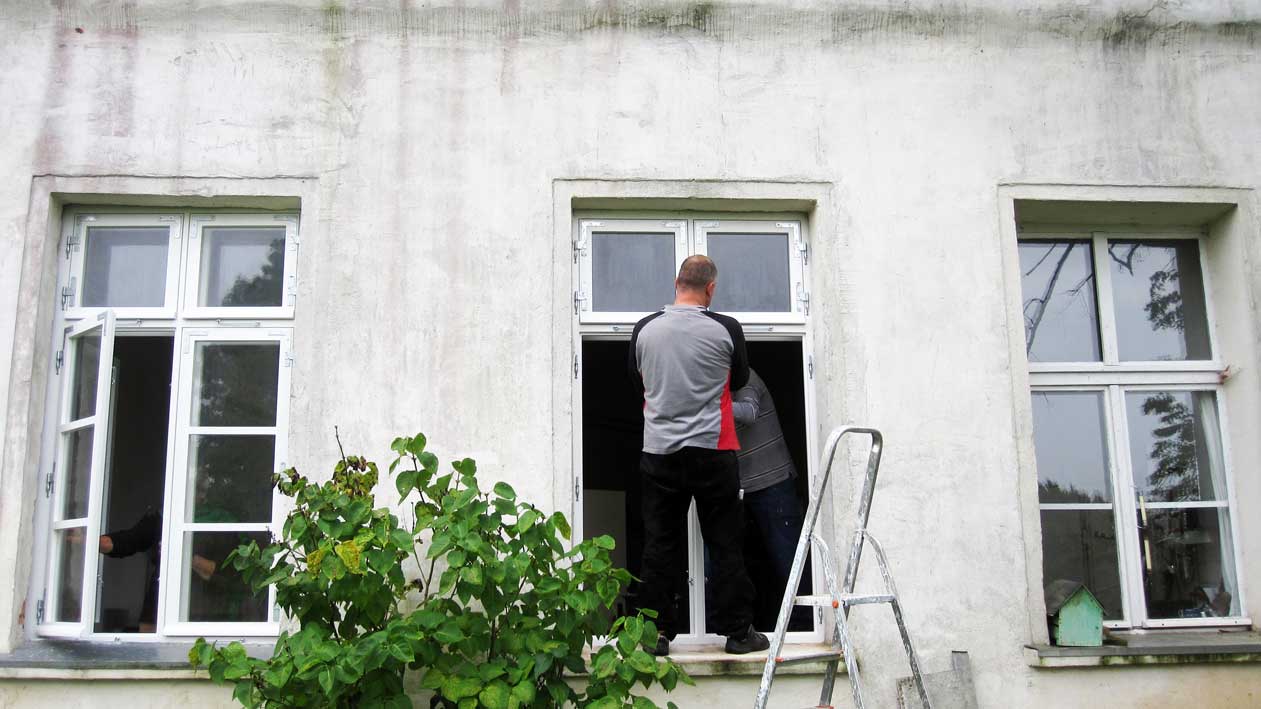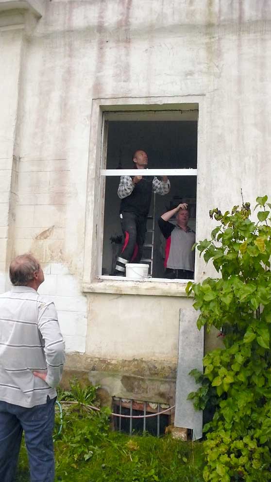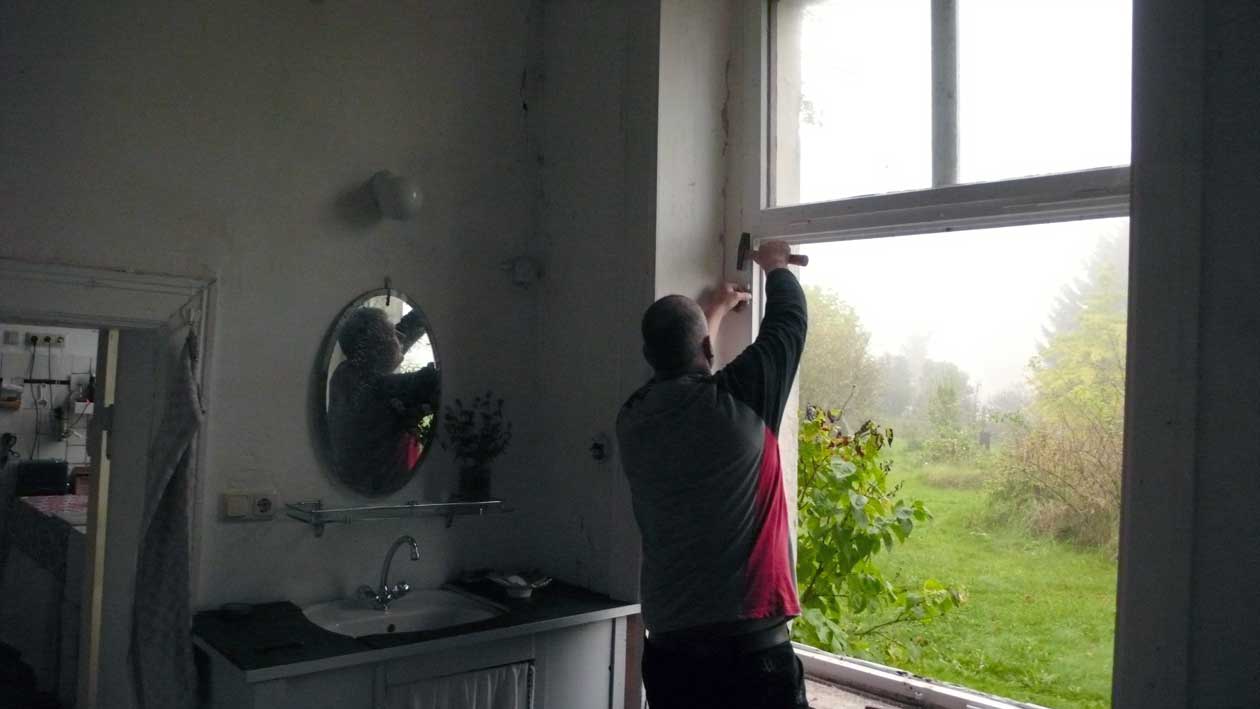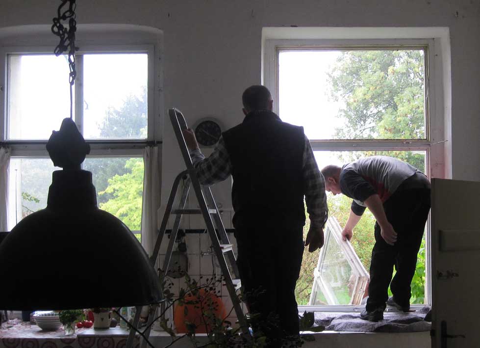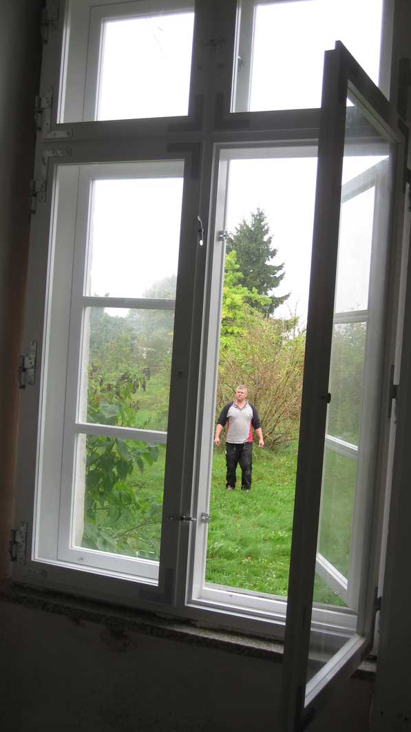 Fenser 3 auf der Küchenseite erneuern, sie gingen nicht auf, Fenster, die nicht aufgehen, auf der Küchenseite. Also neu.