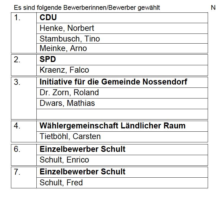 Viele Entscheidungen waren bisher die des Bürgermeisters ohne Gremium. Eine nicht selbstgewählte Entmündigung der Bürger und also aller Öffentlichkeiten. So der zunächst illegitme Verkauf des Weges zur Kirche(Bäckerweg) mit nachträglich erzwungener Gemeindevorlage und ohne Bürgerbefragung der betroffenen Nachbarn, das mit nachhaltigem Eingriff in die historische Dorfstrucktur und Enteignung öffentlichen Besitzes zugunsten einer privaten Vorteilnahme und Bedienen eines Einzelinteresses(Umwidmung eines hist. Weges in eine Autoauffahrt) und mit Einzäunung aller öffentlichen Bereiche und damit Ausgrenzung der Bürger und Kinder ohne modernes Konzept, so das Fällen der Bäume (100 Pappeln, dann gestoppt vom Landrat nach Protesten aus der Bürgerschaft und Öffentlichkeit, und so der Weiden an der Schule, zuletzt die Kita-Baupläne ohne Prüfung auf Zukunftsfähigkeit und die des Kulturhauses ohne Vorlage im Detail oder insgesamt bis heute. Auch das illegitime Unterpflügen des Feldweges entlang des GRabens (L21) von Nossendorf zum Wald von Medrow ohne Protest der Gemeinde, trotz hunderter von Unterschriften einer Bürgerbewegung wird man neu bedenken müssen, um wieder Legitimität herzustellen, entsprechend der Gesetze. Man wird einen Vorsitz der Gemeinde und die Stellvertreter so wählen, dass er und sie konsensfähig sind mit sympathisierenden und produktiven Partnern wie die Freunde der Kirche Kunst und Natur für Nossendorf mit Kooperationt und Aufgabenverteilung, auch an sich anbietende Partner aus den nicht gewählten Kandidaten in den Gemeinde-Orten. Das ist ein Angebot.