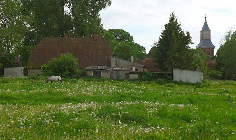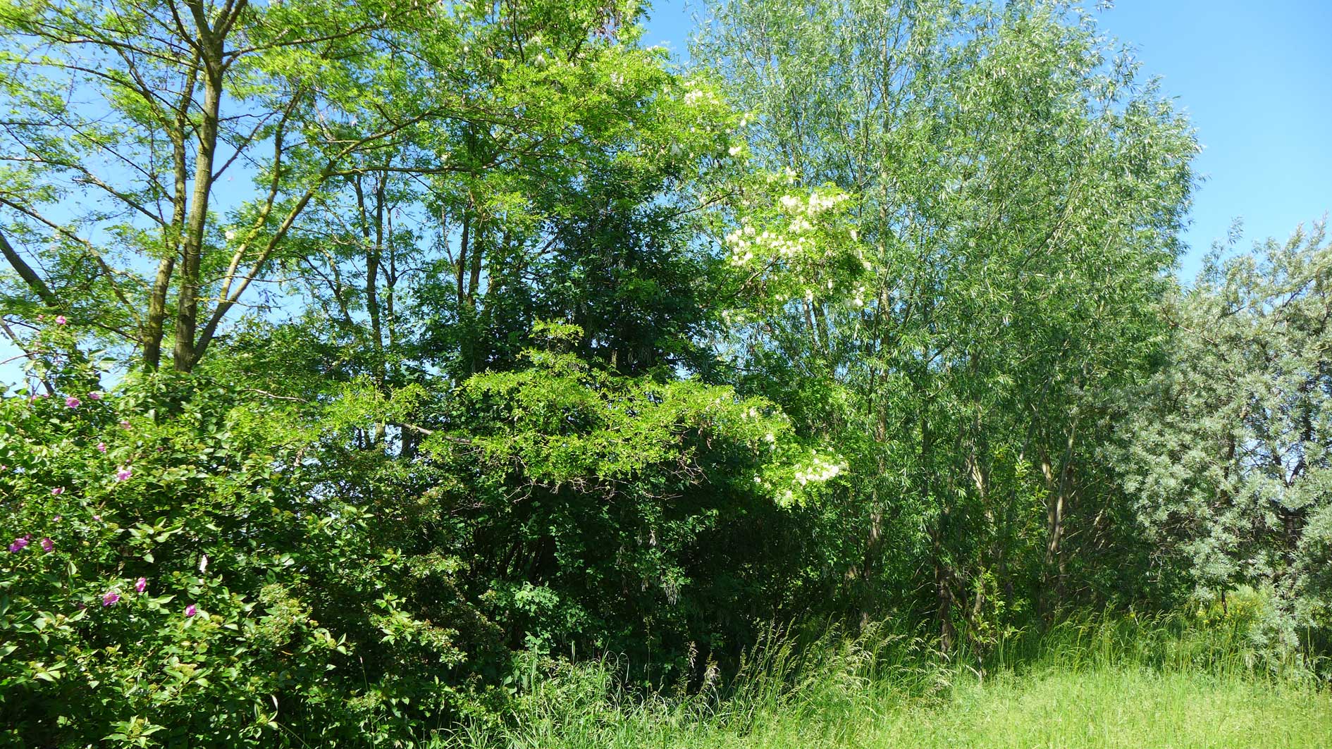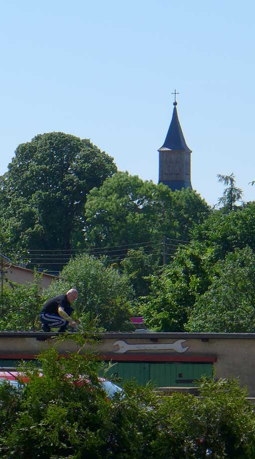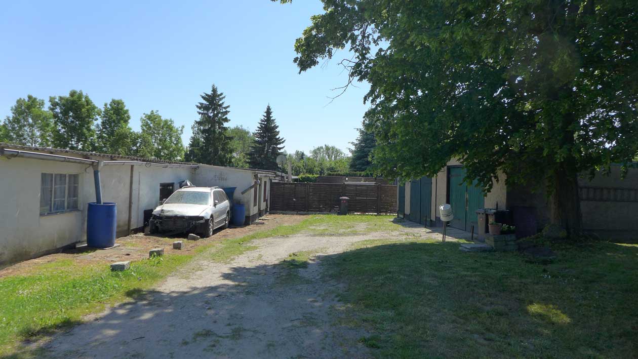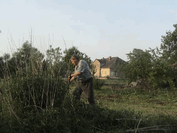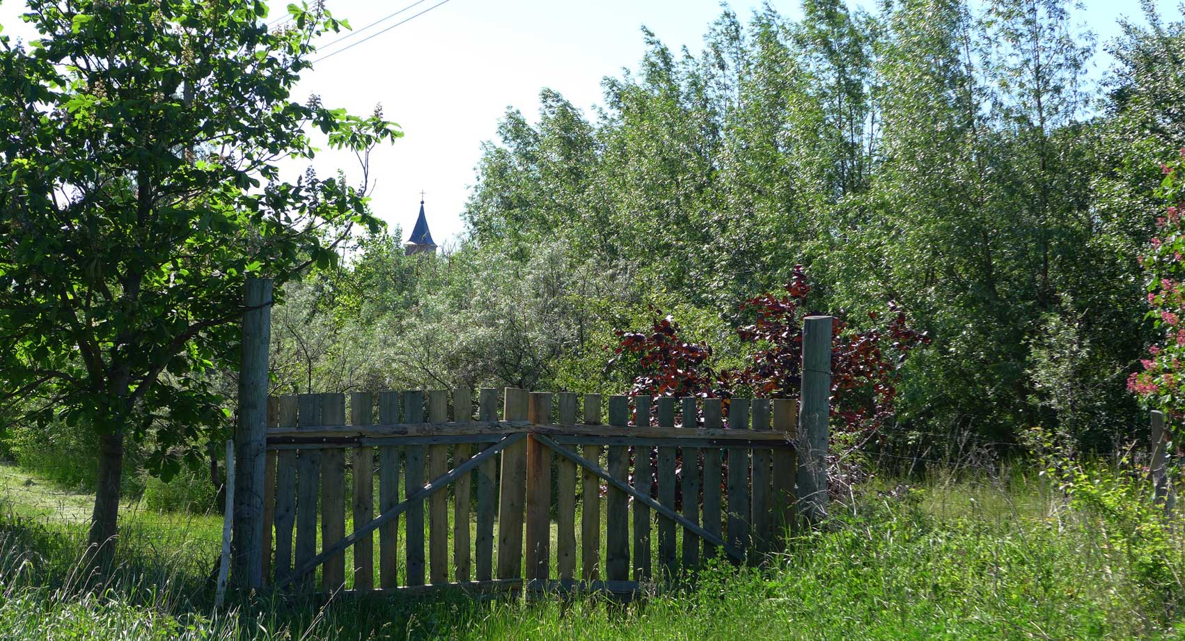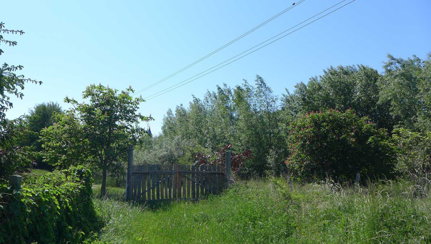 schnell nochmal zurück den Weg mähen, selbst, auf der anderen Seite, zum Tor, wir kommen wieder.