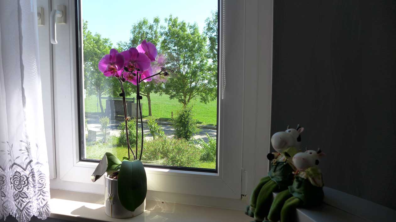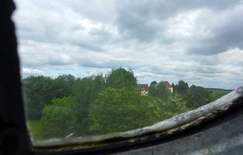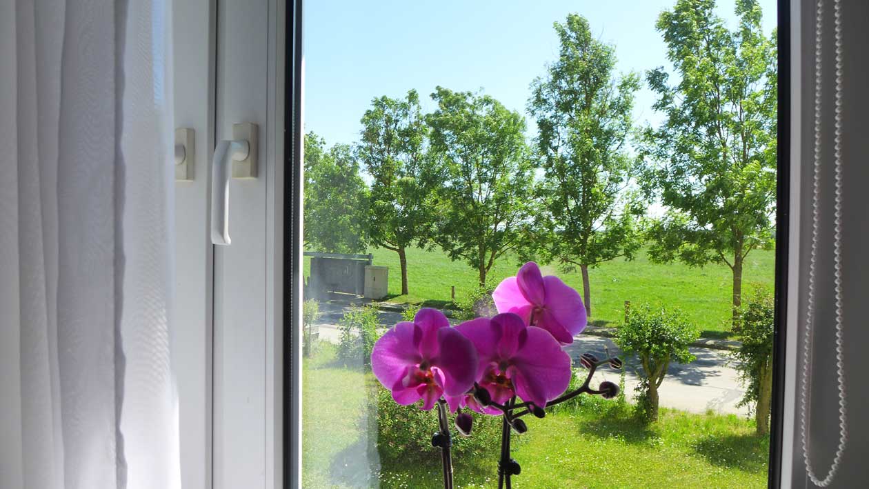 man kann die Autos zählen wenn sie vorbei fahren und drüben die Kühe sehen, auf der Weide manchmal auch wie sie einsteigen im Buss
