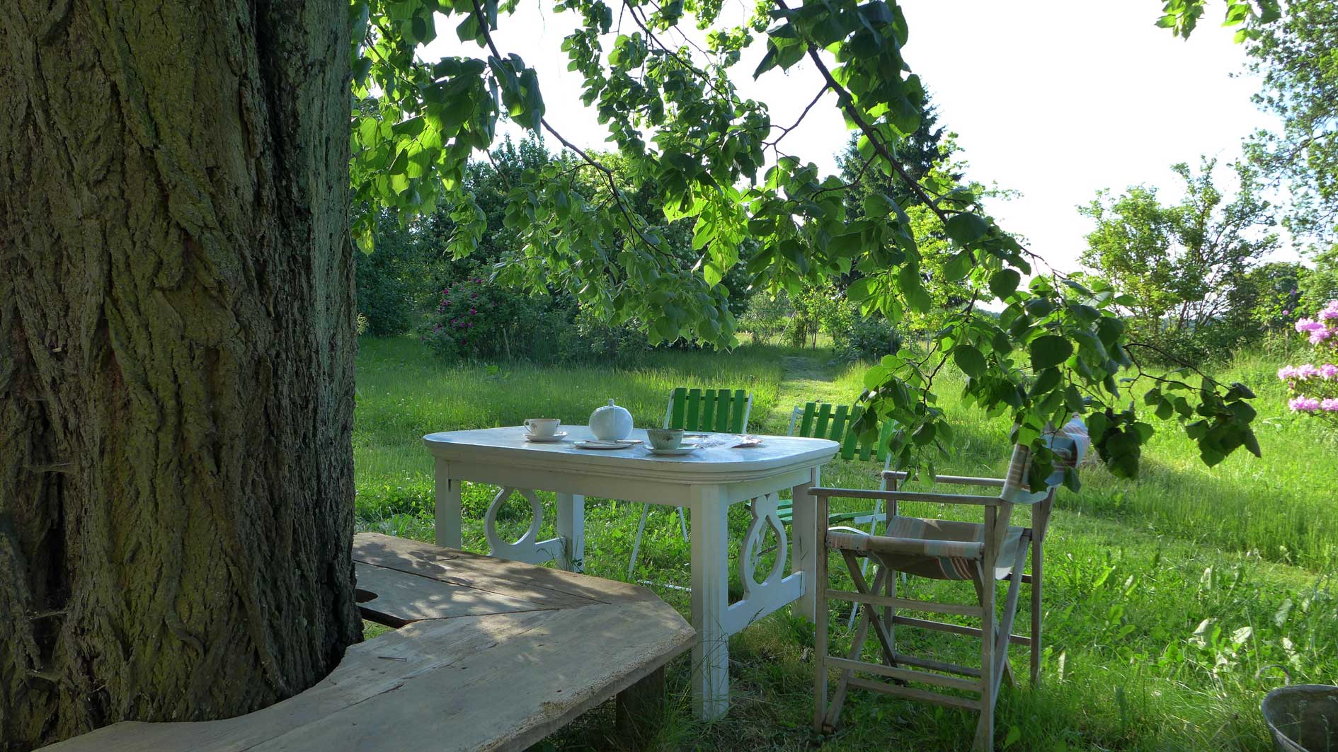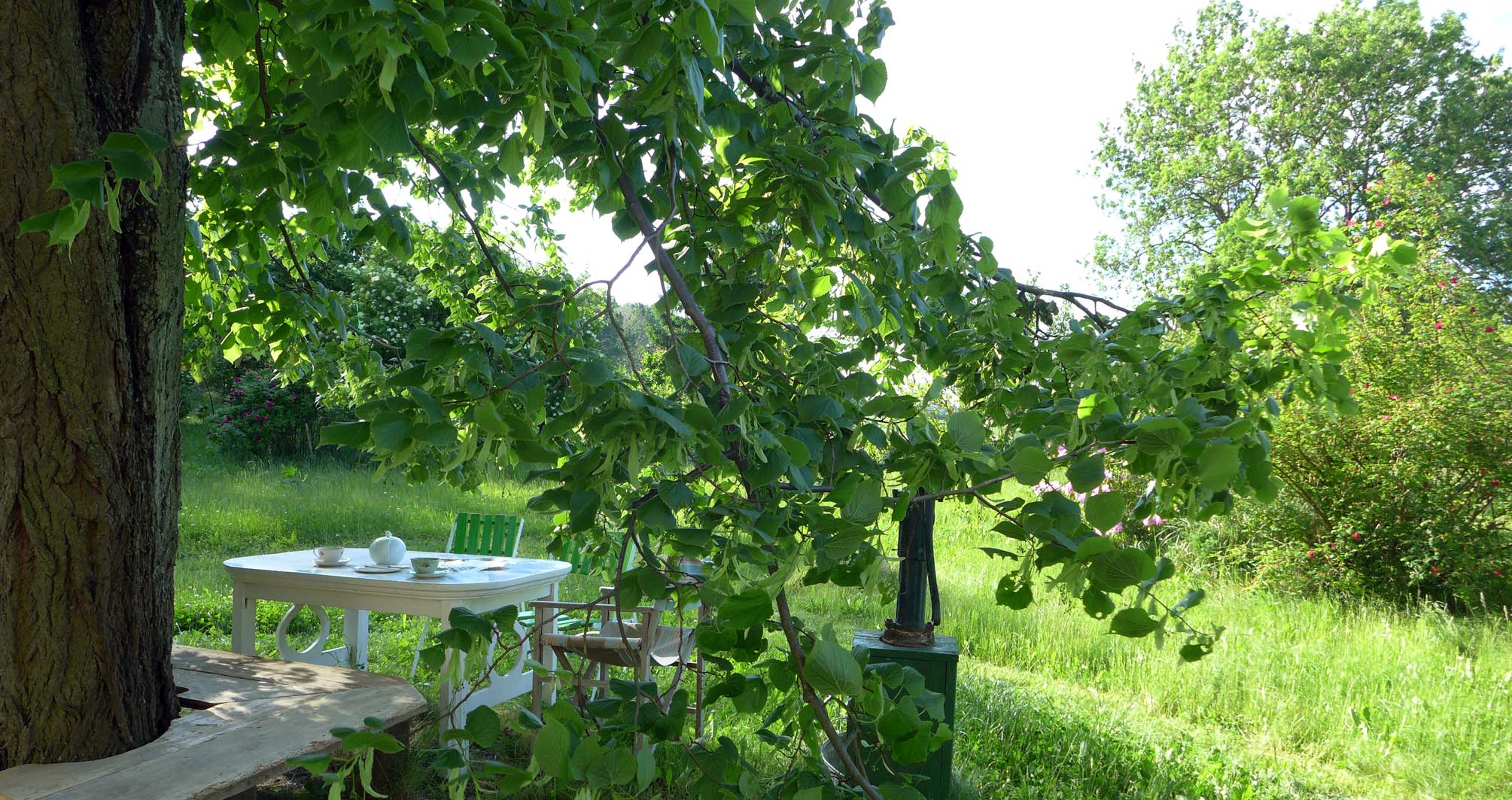 die von Alfred gebaute Bank unter der Linde des späten Lebens neu gerichtet