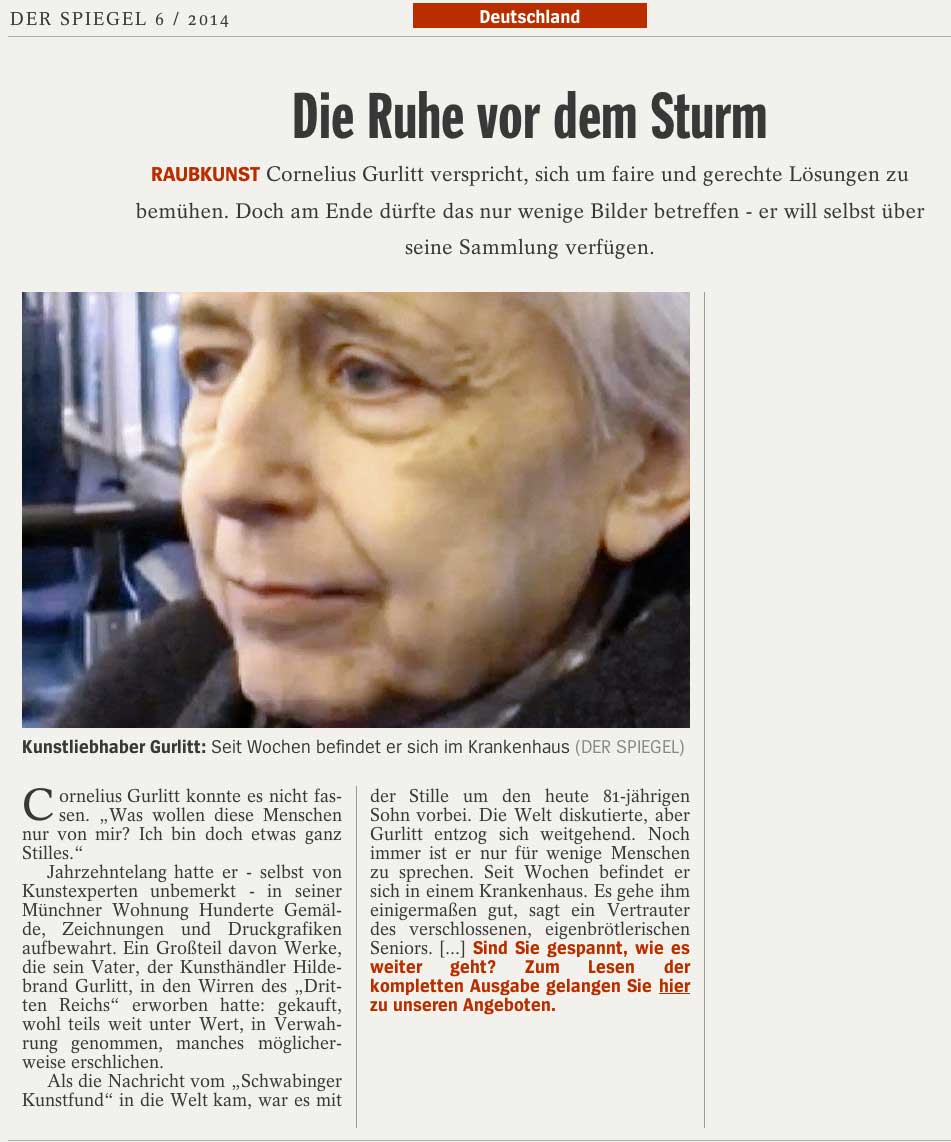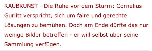 Ankündigung des Spiegel in der Deutschland- Abteilung, also nicht Kultur. Unter RAUBKUNST.