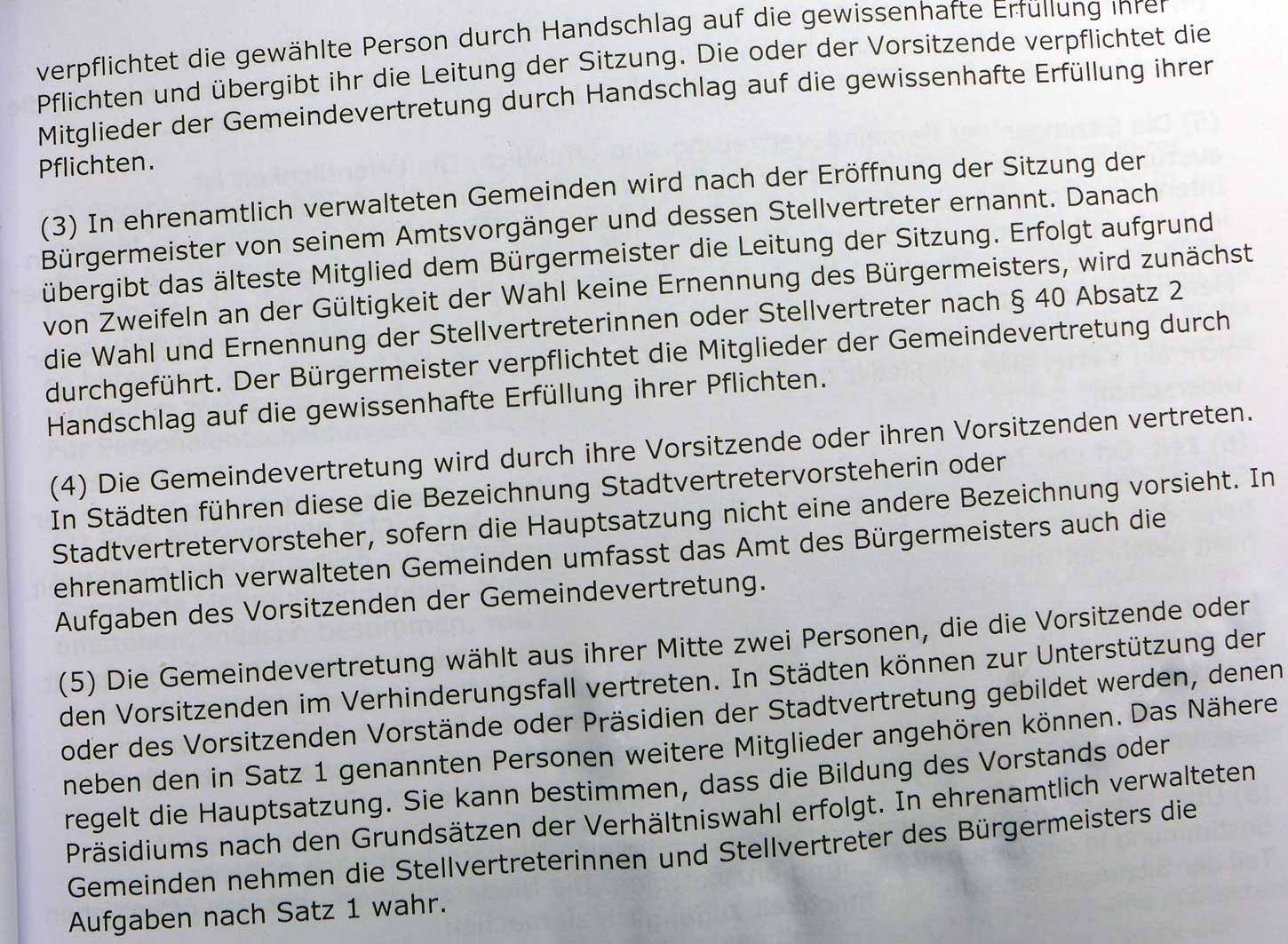 Dann wird man die Rechte des Bürgermeisters festlegen. Tut man es nicht, kann er viel allein machen. Und nachher Zustimmung einholen. Binnen 6 Wochen. Wieder vorsicht. Der Weg zur Kirche war schon mit Zäunen und Fundamrnten fertig, bevor die Zustimmung vor der Gemeindeversammlung abgenickt wurde. Die Pappeln waren gefällt, 100 Stück, bevor die Gemeinde davon erfuhr. Wie das zuletzt mit Kita und hiesigem Kulturpalast ablief, haben wir selbst gesehen.