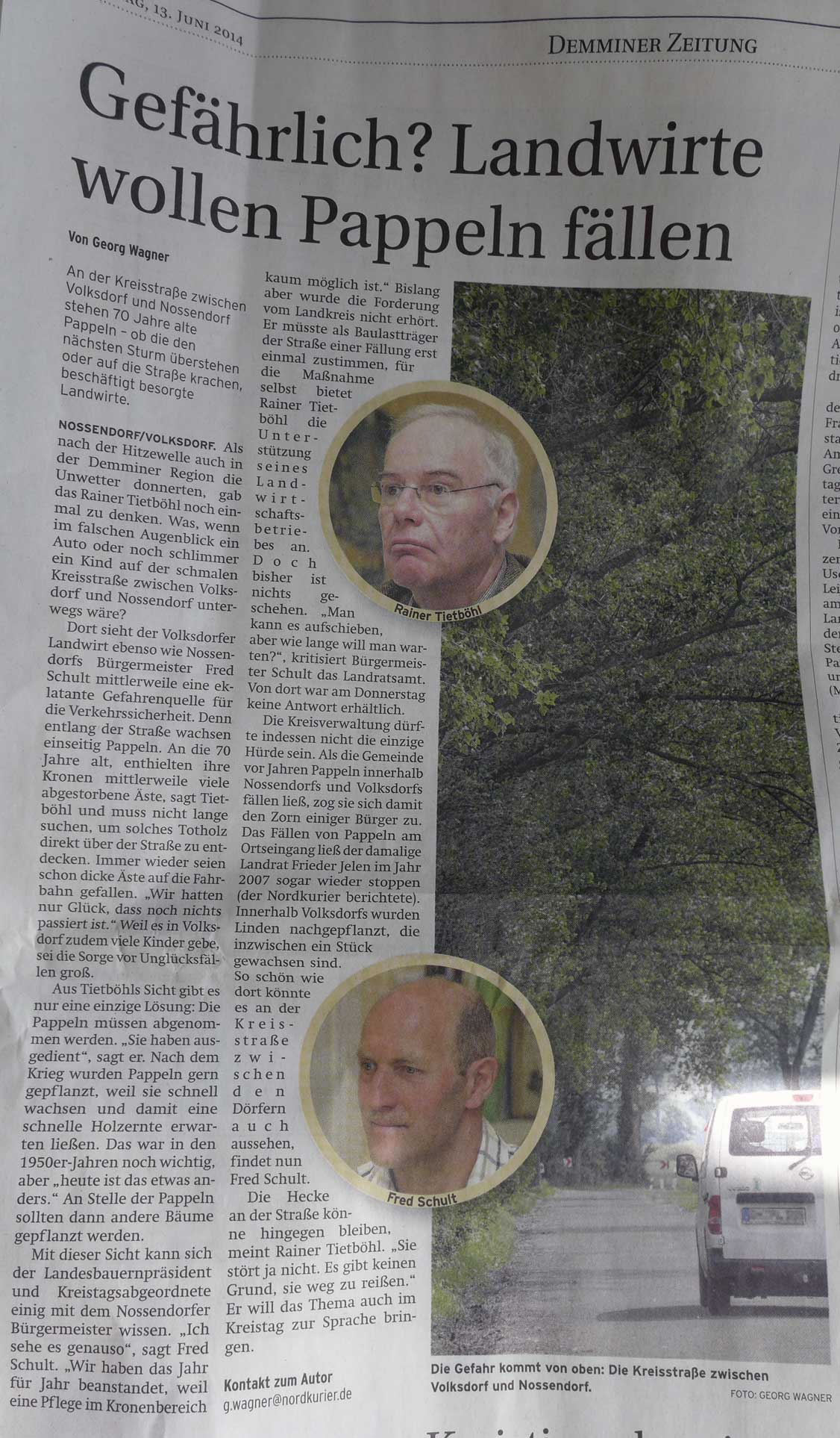 Tietböhl verabschiedete sich im Sommer nach dem Nein des Fachressors zum neuen Eingriff in Kreis-hoheitliche Bereiche, im Nordkurier mit der Drohung nun von Neubrandenburg aus politisch Einfluss zu nehmen, was sachliche Fachaufgabe wäre, den bisherigen wie neu bequemen Bürgermeister offen an seiner Seite, warum er bleiben musste, trotz 4 mutigen Neins von seiner Seite: nun sei endlich schluss. Die Wege und Strassen bringen es an den Tag. Ihre Finanzierungen unter der Decke, Einziehungen illegal, Zäune wie Mauern , in den Dörferns und auf den Feldern. Gegen die Stimmen der Bürger nun.