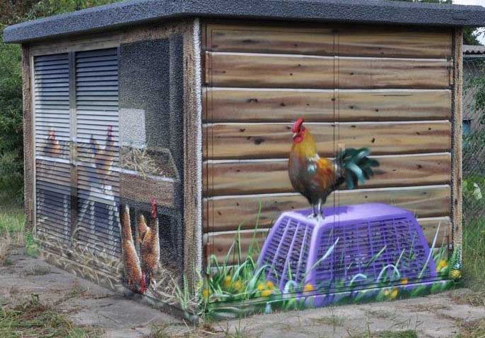 Die 4 Flächen des kubischen Würfels in seiner sachlichen Funktion einzubeziehen in die Umgebung des Dorfes, aber nicht als Projektionsfläche beliebig genehmer Motive, ist die Aufgabe. Eine einfache das heisst sachliche Colorierung in einer Farbe aus gegebenen Farbei der Umgebung(Rostrot)will Eon nicht.