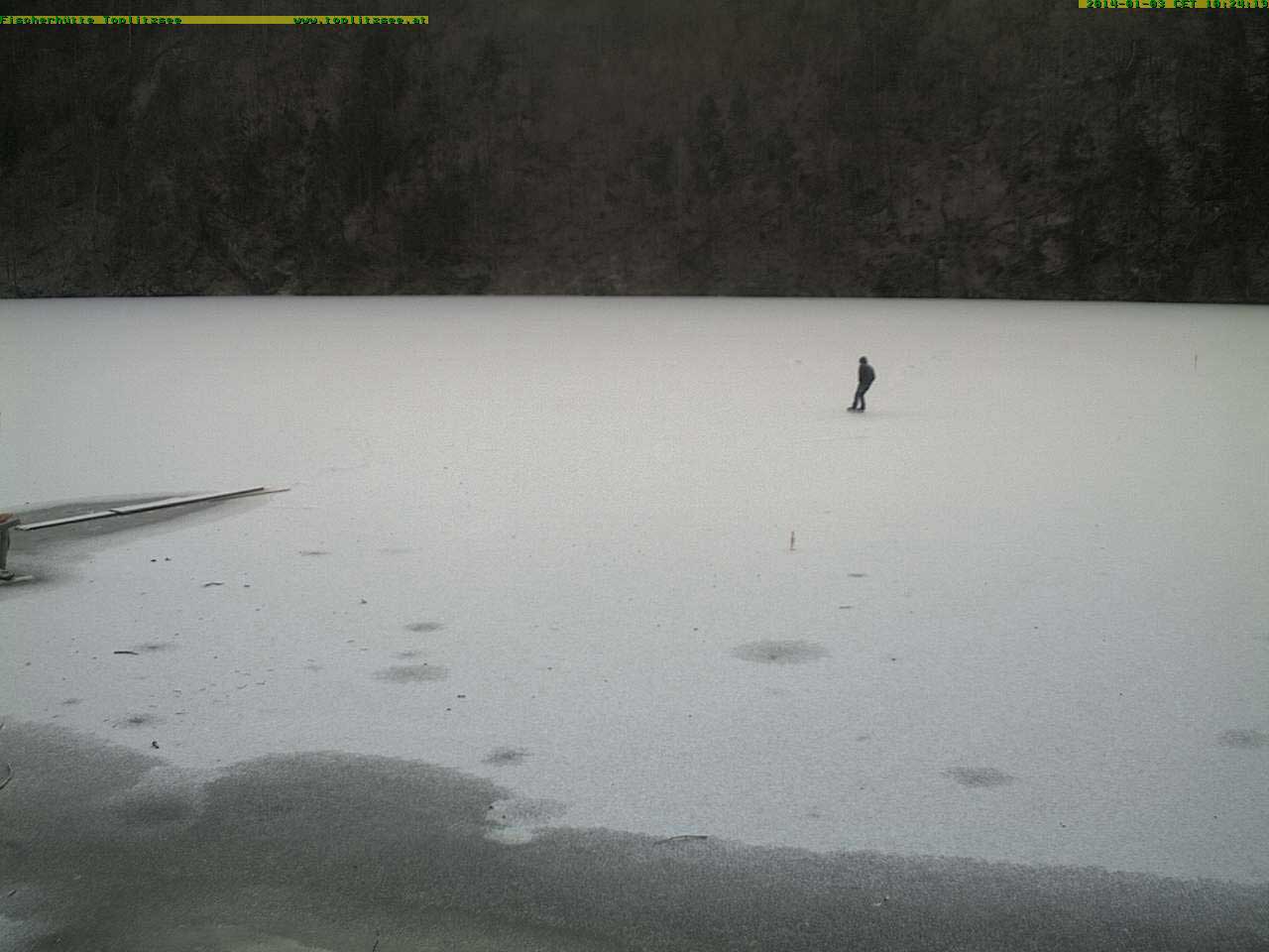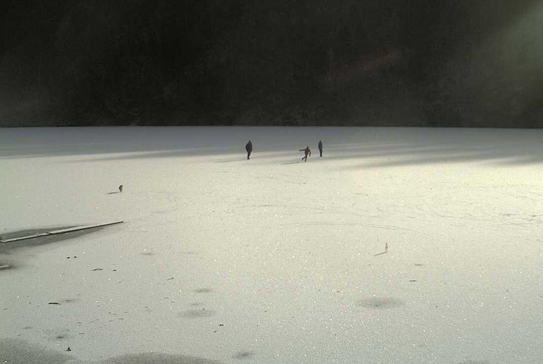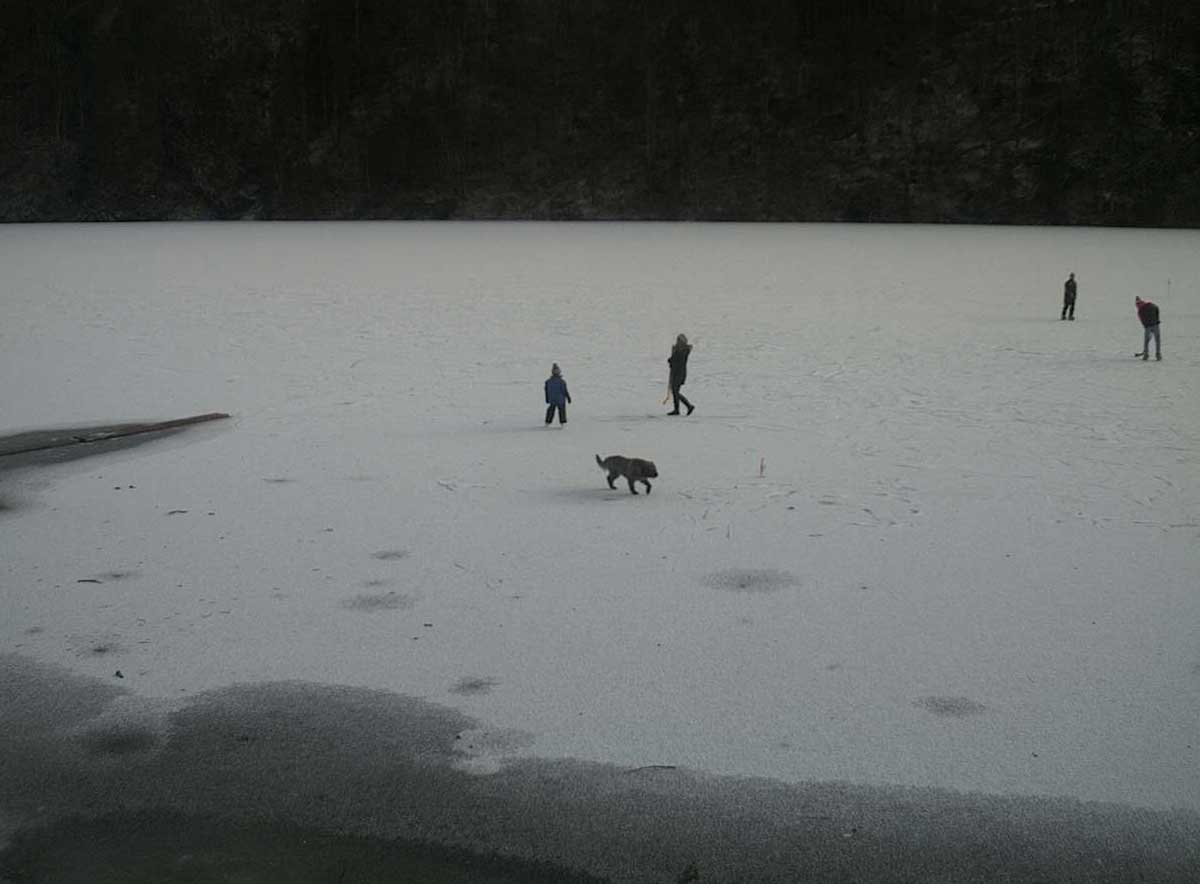 am Toplitzsee friert schon das Neujahrs-Eis und erste Menschen wagen sich über der Tiefe zu gehen.