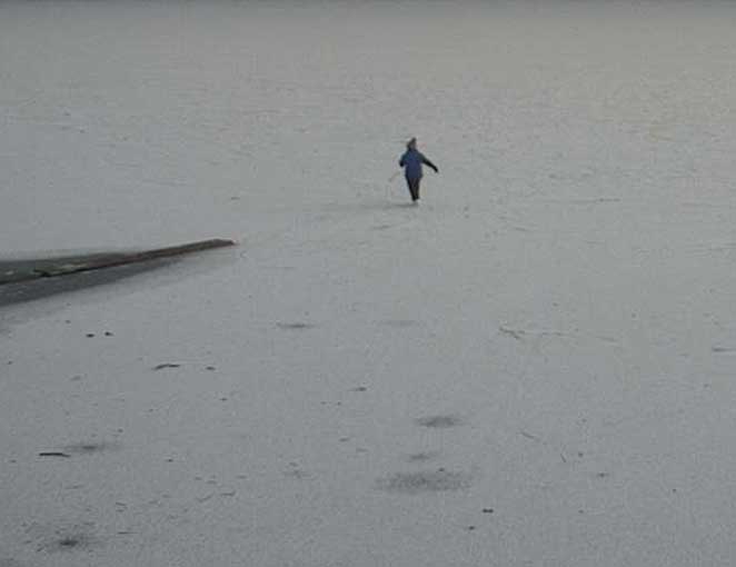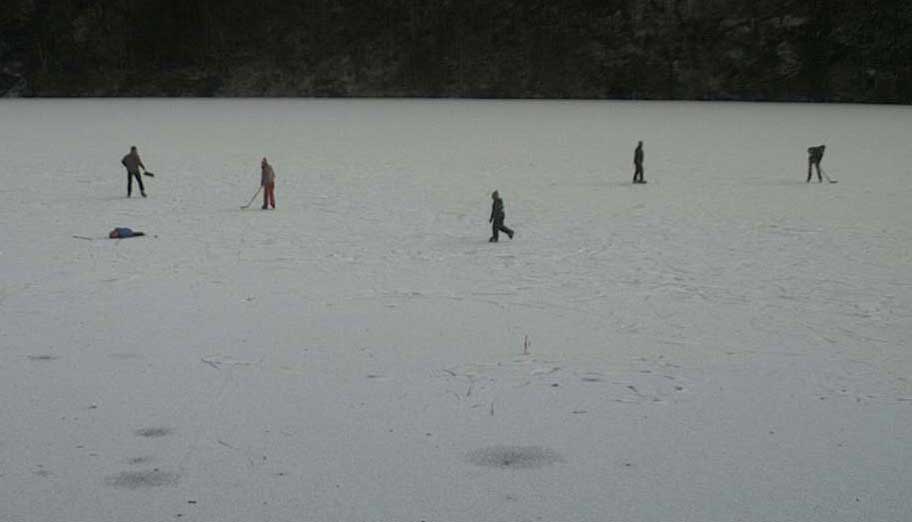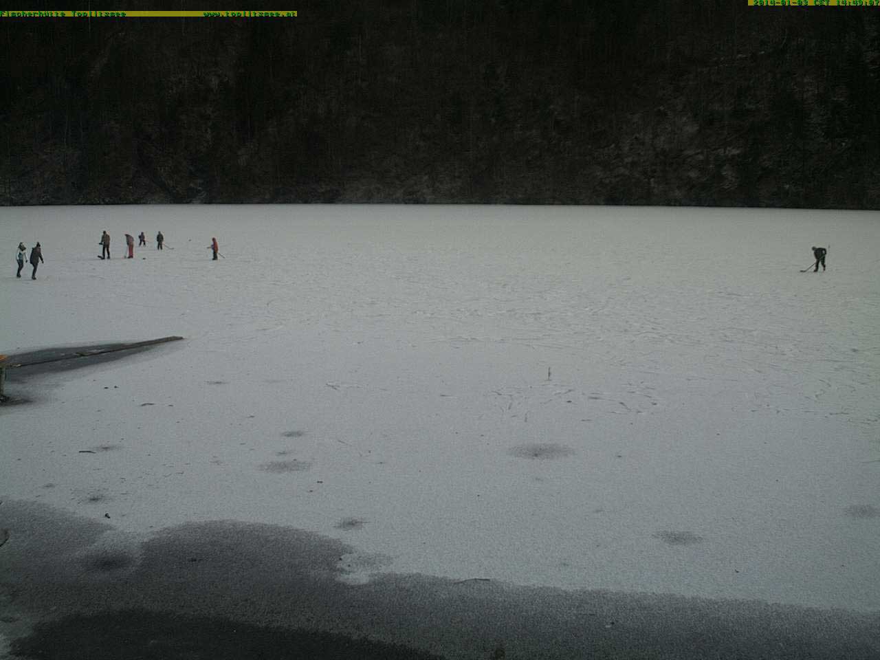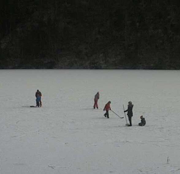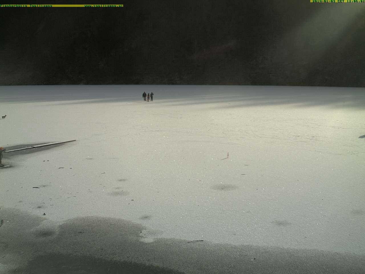 am Toplitzsee friert schon das Neujahrs-Eis und erste Menschen wagen sich über der Tiefe zu gehen.