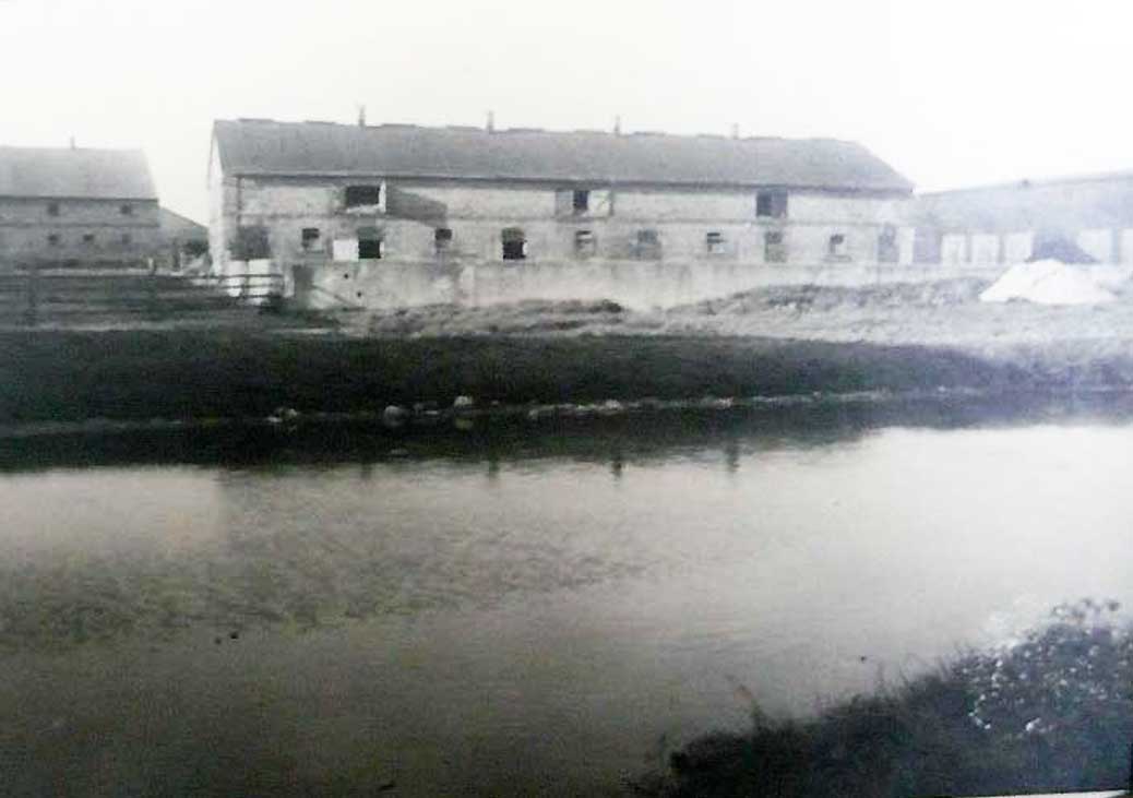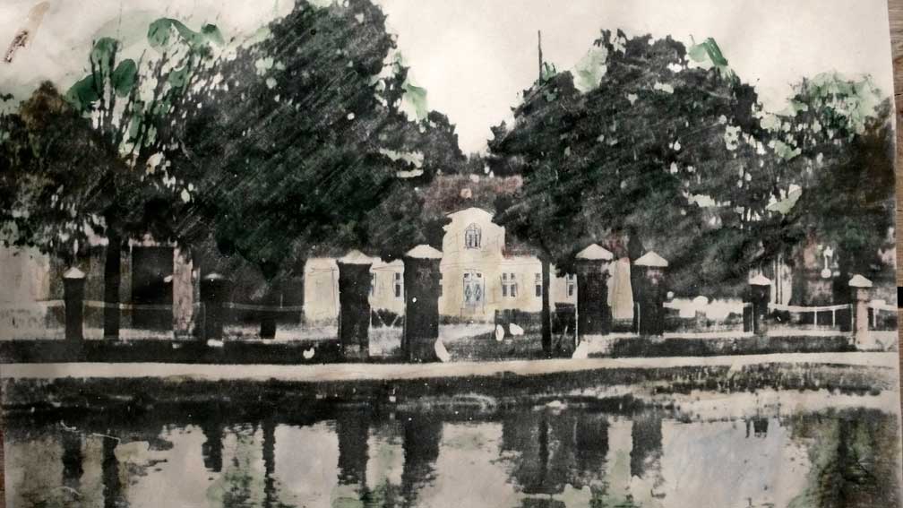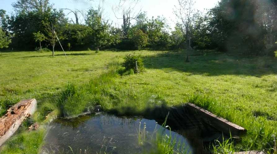 hinter dem Haus sehen wir die Notwendigkeit des Abflusses und der Sammlung des Wassers, das der Graben früher von allen Seiten aufnahm.