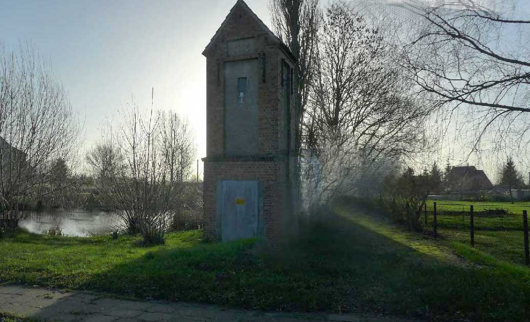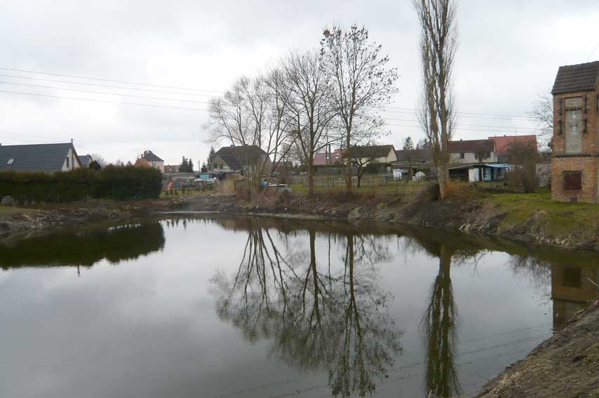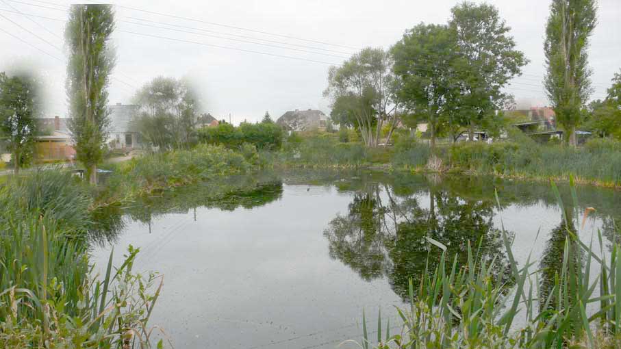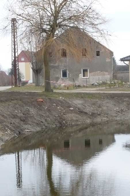 Dieser Turm, früher der Sammlung und Verteilung des Stromsin jedes Haus und die Ställe, vor über hundert Jahren entstanden, zentral wie diese Dorfteiche und eben gerade dort, soll nun einer neuen Widmung zugeführt werden und auch im Äusseren sorfältig den neuen Platz des Wassers und seiner Ufer zentral behaupten. Wir wissen wie. Woher und wozu und für was. Verhandlungen mit Eon werden auch den neunen Standort aus Beton freundlich einbinden. Umweltamt und Denkma-Schutz stehen bereit