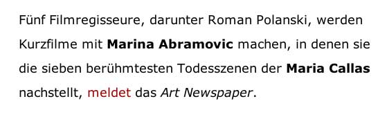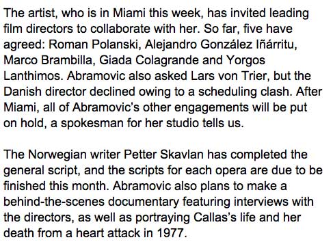 Dazu gehören ihre Auftritte damit in NY, mit Coppola(in Amerika), in Cannes (Parisfal Premiere), Berlin (die Monologe), und München ...