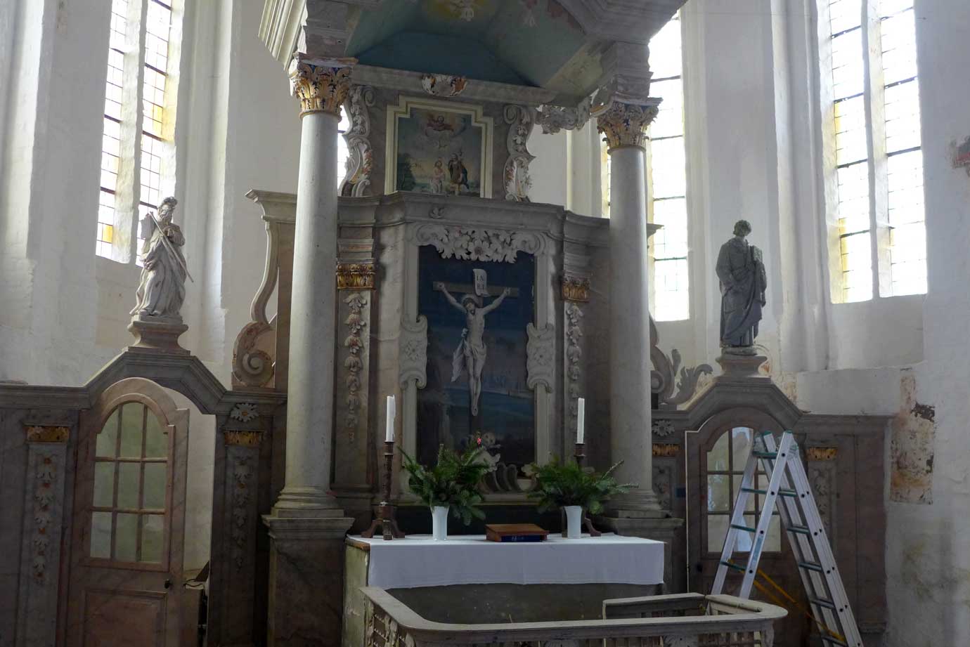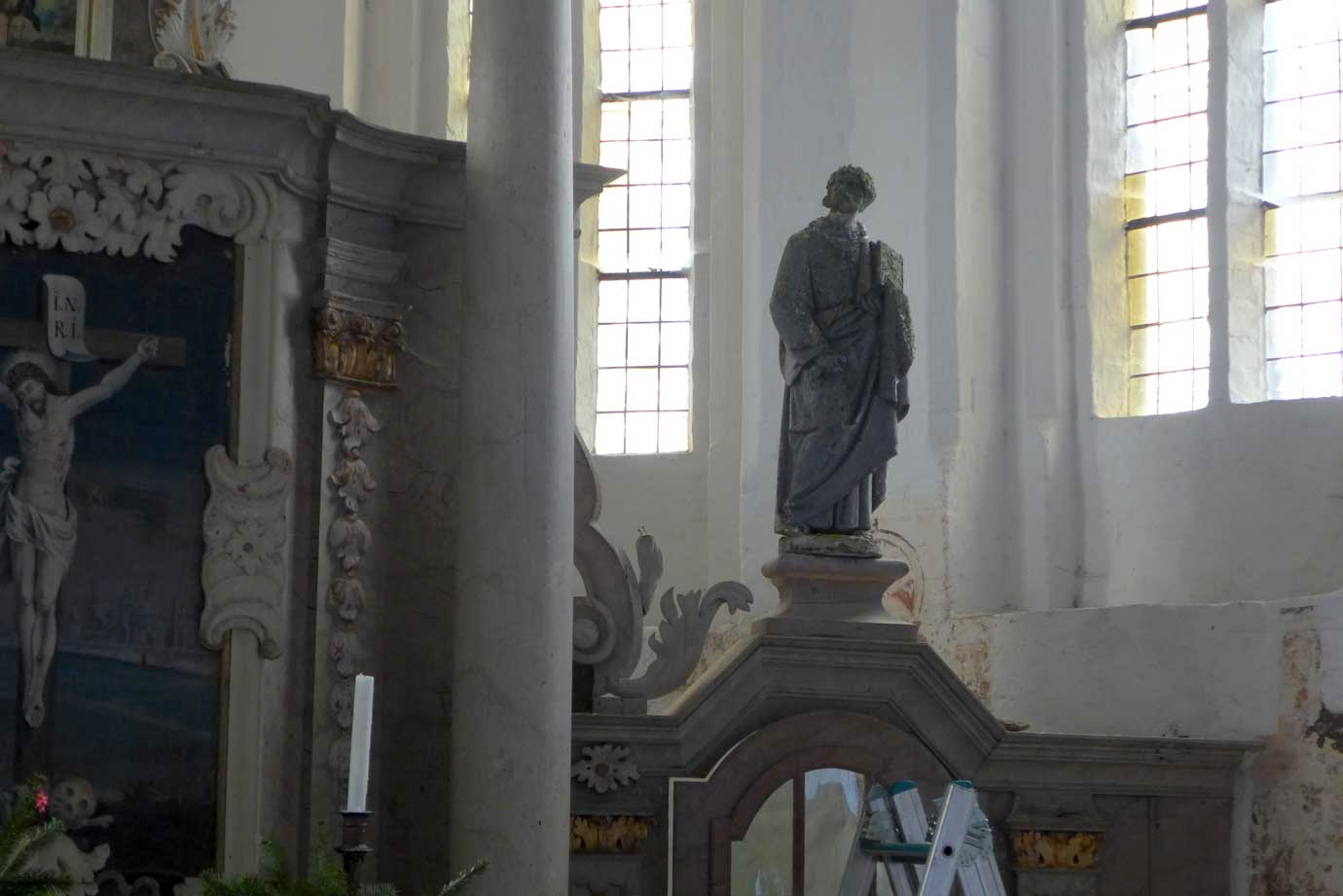 was für ein Dialog zweier Männer in weiten und langen Gewändern, durch die Zeiten, der eine drinnen, der andere draussen, geborgen, über den Gekreuzigten, Verlachten, hinweg. Nun bei uns. Eine sacra conversatione besonderer Art hier bei uns? Eine Probe und ein Angebot.