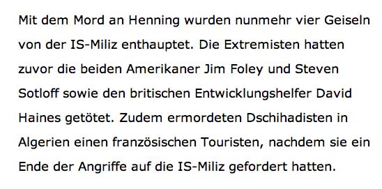 London (dpa). Die Terrormiliz Islamischer Staat droht mit der Enthauptung einer weiteren westlichen Geisel. Es handelt sich um einen US-Amerikaner. Seine Eltern flehten die IS-Terroristen in einem Video an, ihren Sohn freizulassen.