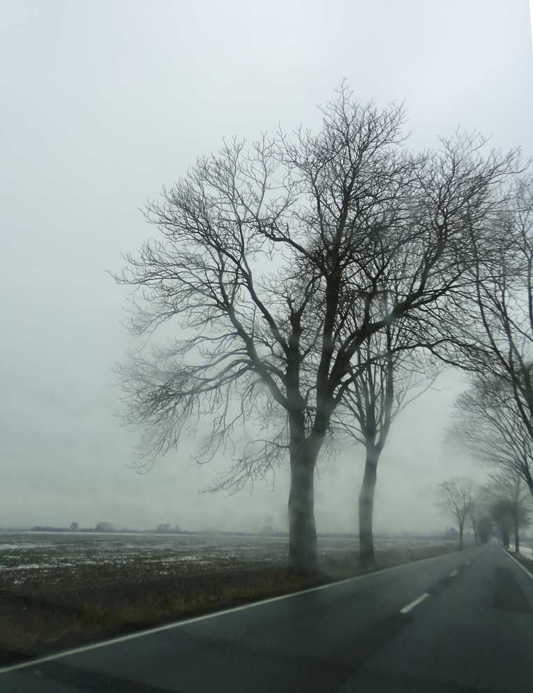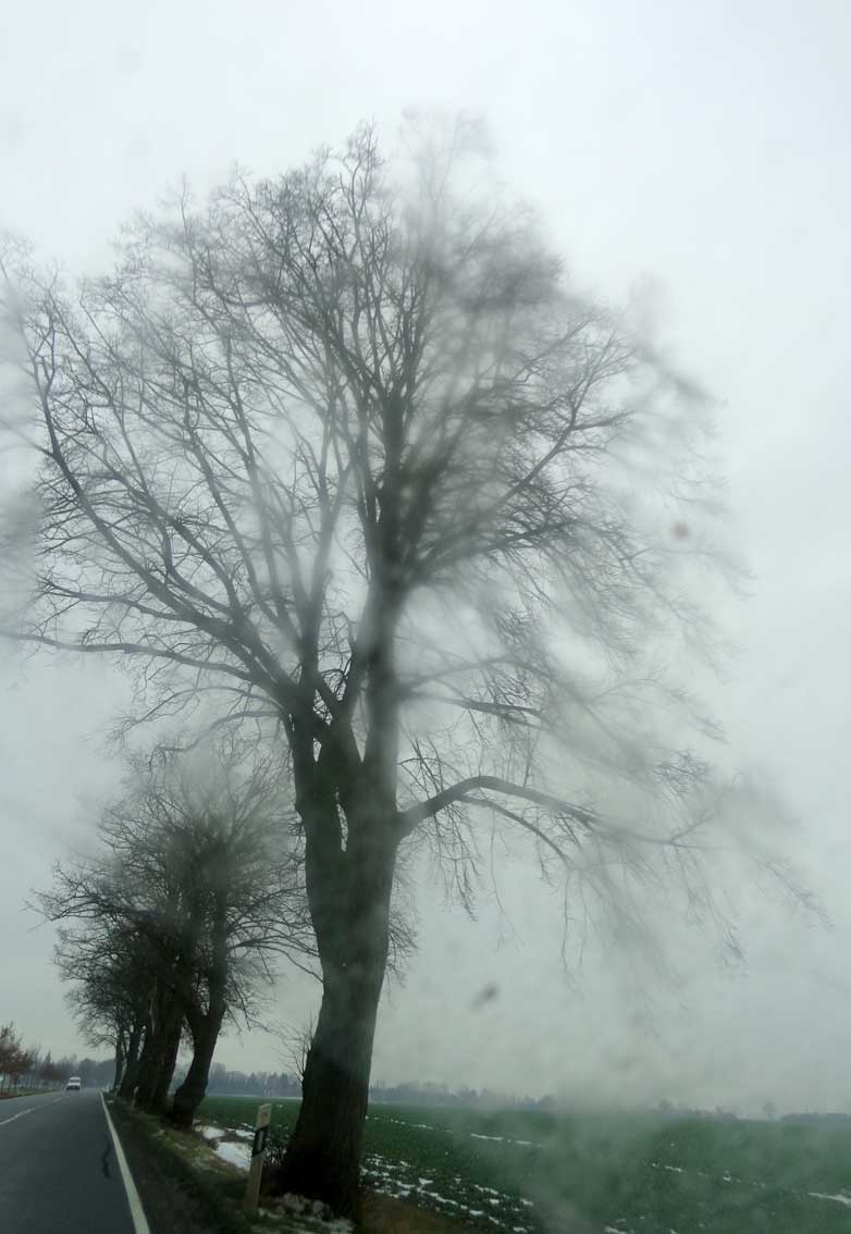 selbst beschnittene Bäume haben ein Silhouette. Ohne Blätter sieht man ihre Äste und Stämme besser.