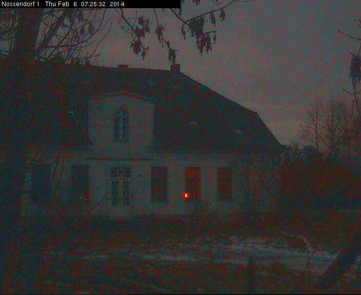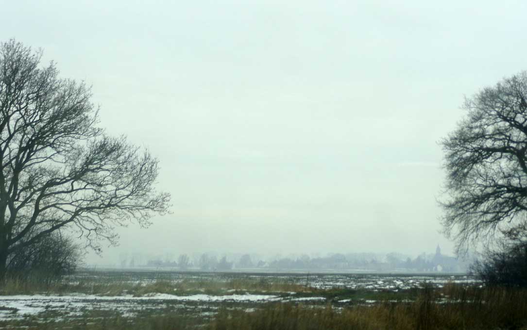 Das dunkle Grün und Blau als einzige Farben. Aber der Turm zeigt zwischen Hecken den Blick ins Nossendorfer Land.