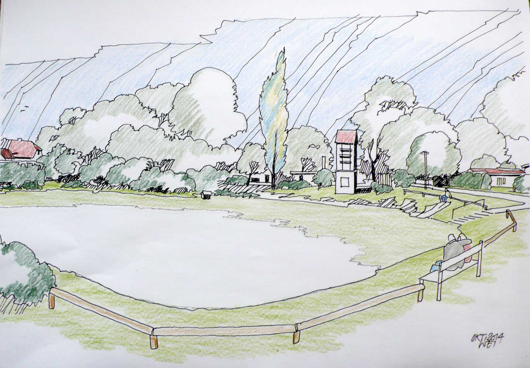 Einmal wie jetzt mit und ohne Zaun zur Wahl. Die sie wohl nicht wollten. Plan mit Treppe hinab und alles allen offen.