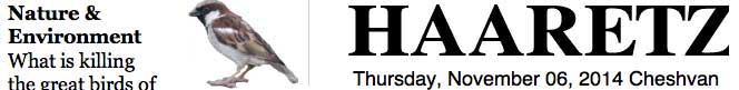 fernab um Mitternacht noch spät im Internet gefunden, neben dem Titel der Zeitung in Israel, mit soviel Sorgen selbst, mit sich die Not Europas benennend am Verlust ihrer Vögel, im Bild der Spatzen - vielleicht rettet das noch mal uns alle.