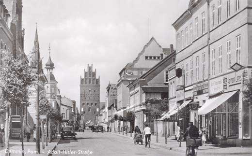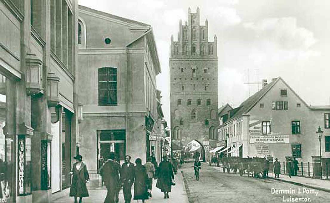 Demmin wie wir es noch kannten. Der Luisentum, das Tor steht noch und das Gebäude rechts, so auch das alte Kaufhaus links Todenhagen, leer nun, aber dazwischen zwischen Todenhagen und Tor ist alles weg. Nur noch Leere und ein Fluss, der hindurchgeht. Alles jetzt Leere.