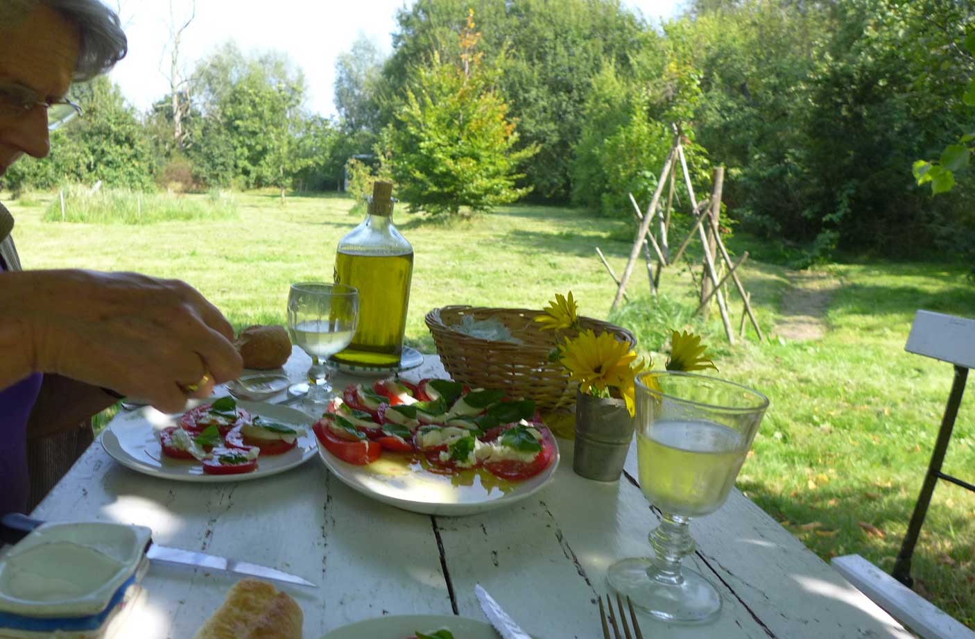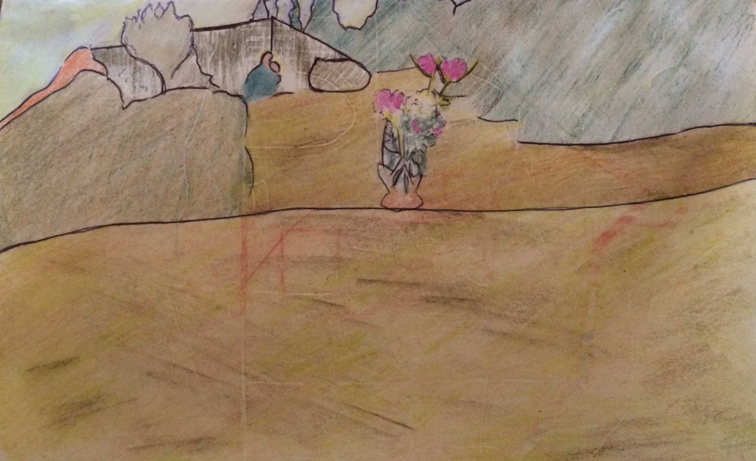 Antons Blumenvasen in der Landschaft.