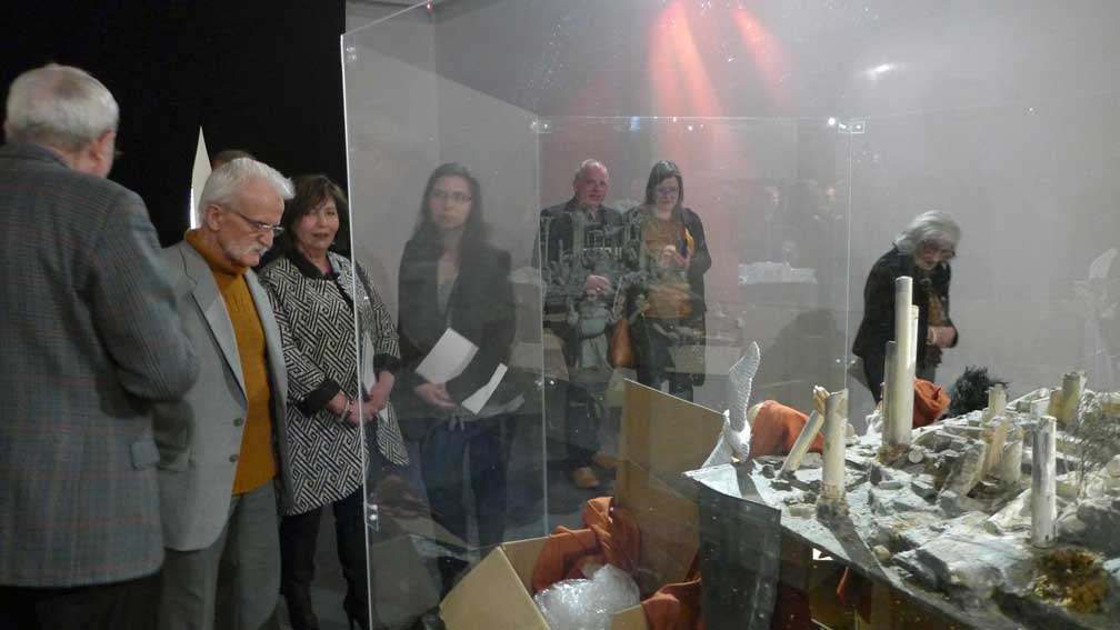 Am Dienstag angefangen, am Mittwoch Presse, am Freitag komplett mit Licht und Ton Projektionen, Texten, Installationen der Wände und Figuren zur Eröffnung. Allen Dank.