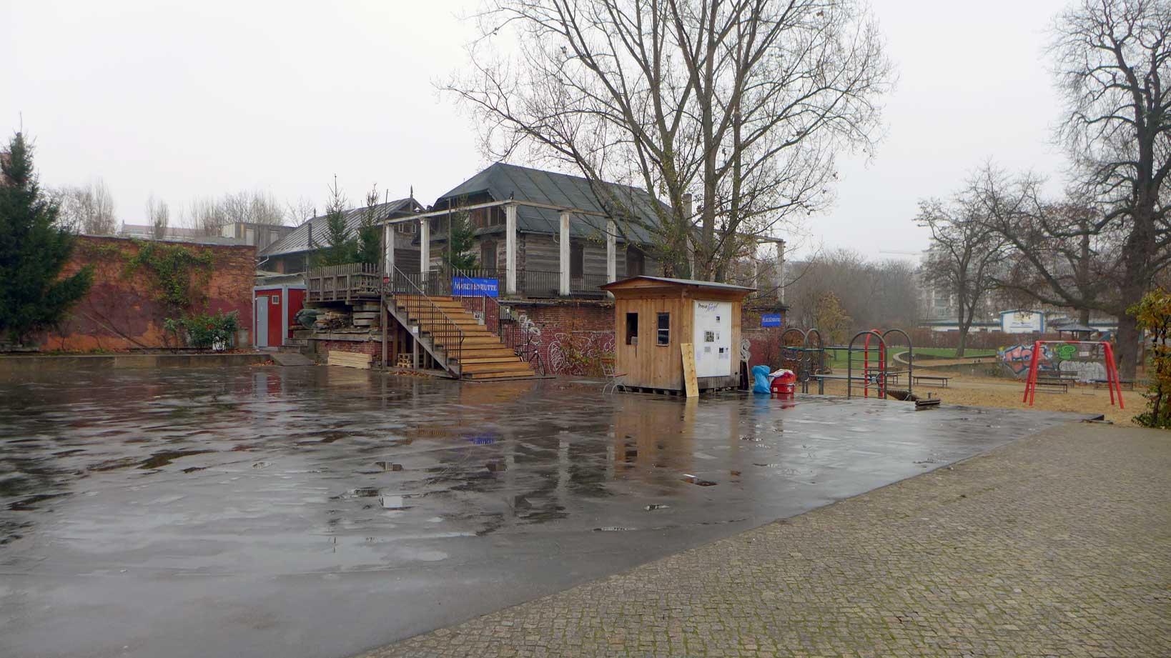 eben noch ein vioööes Haus nun leerer Platz und die Märchenhütten im Dezember