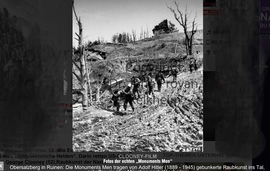 Diese Leute aus den USA kamen Kunst zu sichern. Als ginge der Kampf um sie. Daraus wurden Bilder, die deren Sicherung aus den Schutzräumen des Krieges galten. Erst als sie entdeckten, dass in den Schutzräumen des deutschen Reichs auch solche Bilder waren, die da nicht hingehörten, wurde diese Aktion zu einer Befreiungstat. Diese vorwiegend Bilder kamen an ihre Orte zurück, zumeist in den Zentren der im Kriege von Deutschland besetzten Gebiete.