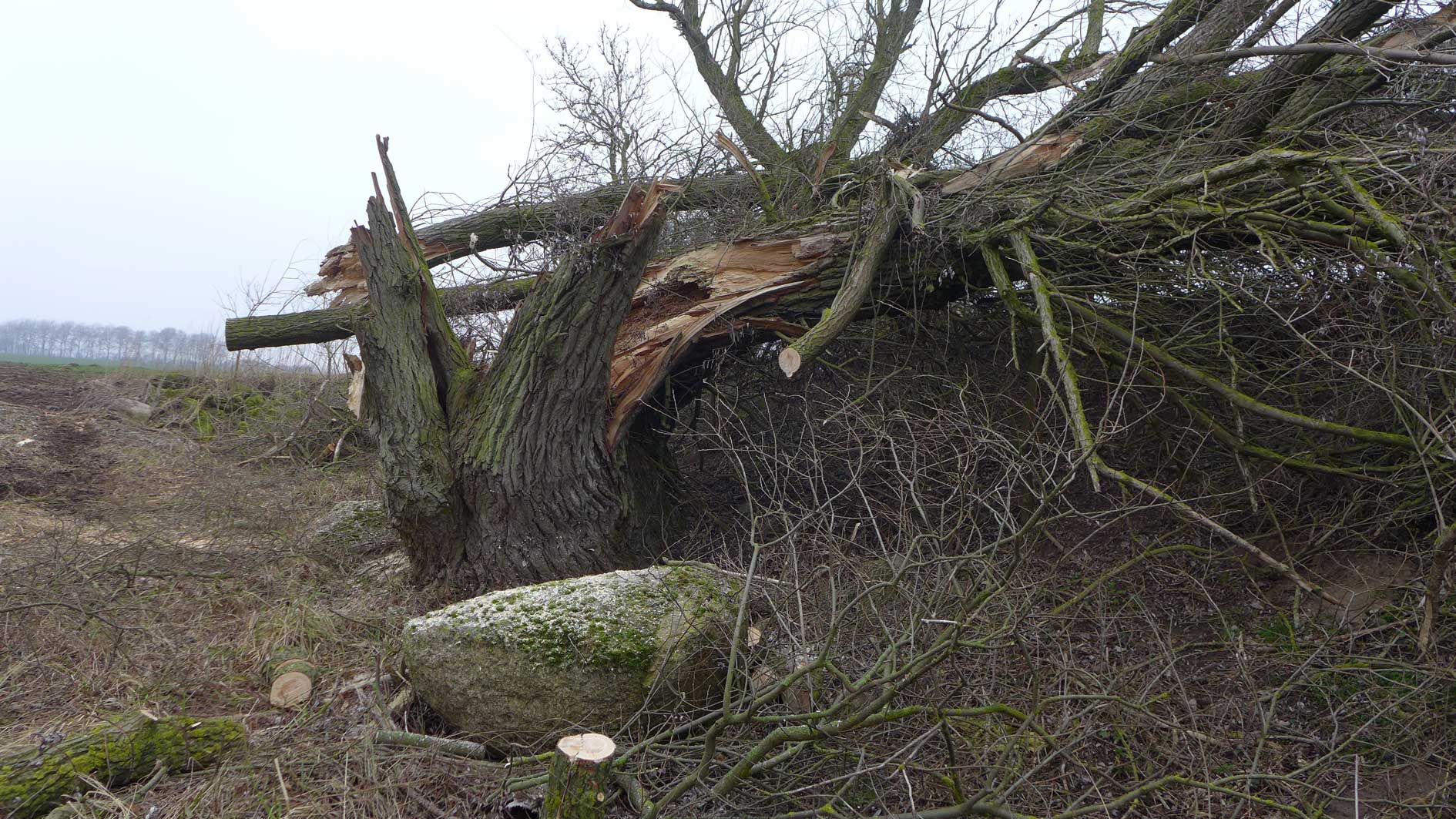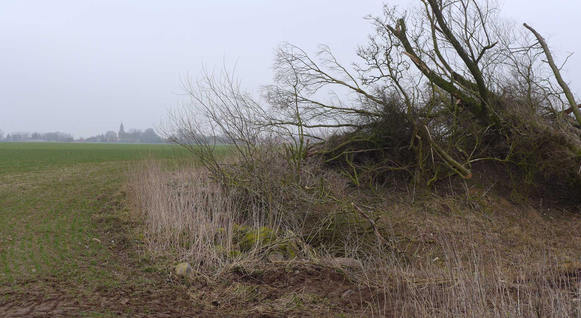 hier gab es das Bollwerk für die Kähne am Ufer, Rüben verladen, und sonst nichts. Die Reste geben das Material vor.