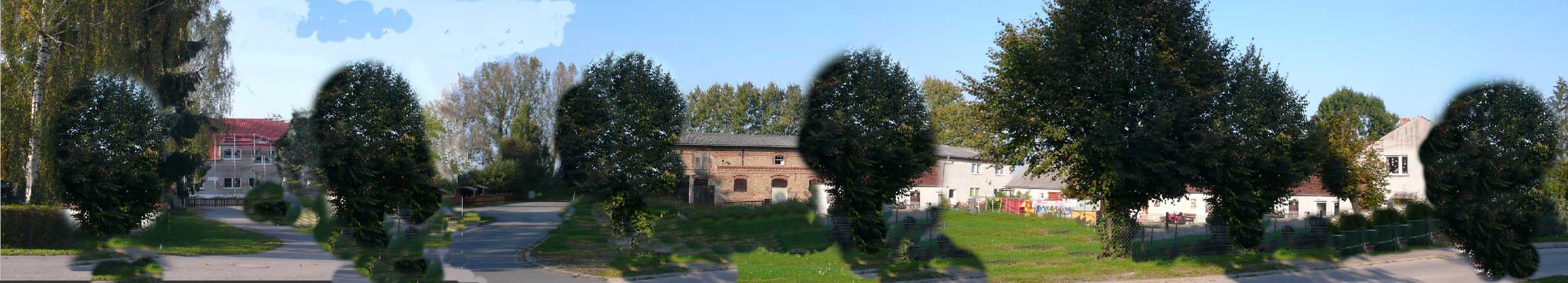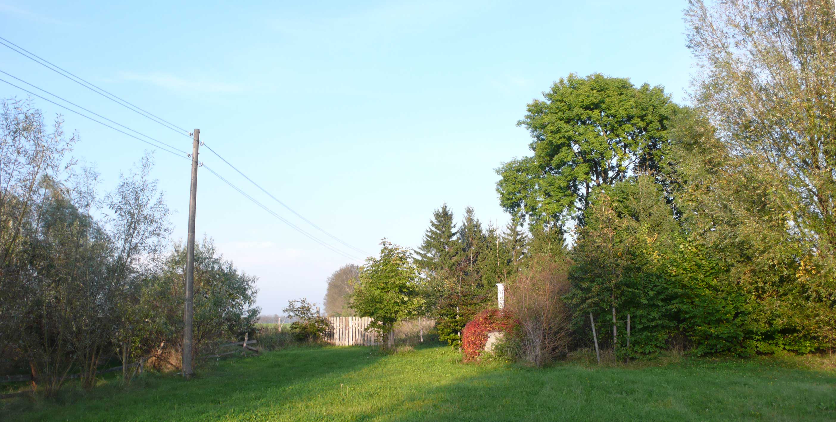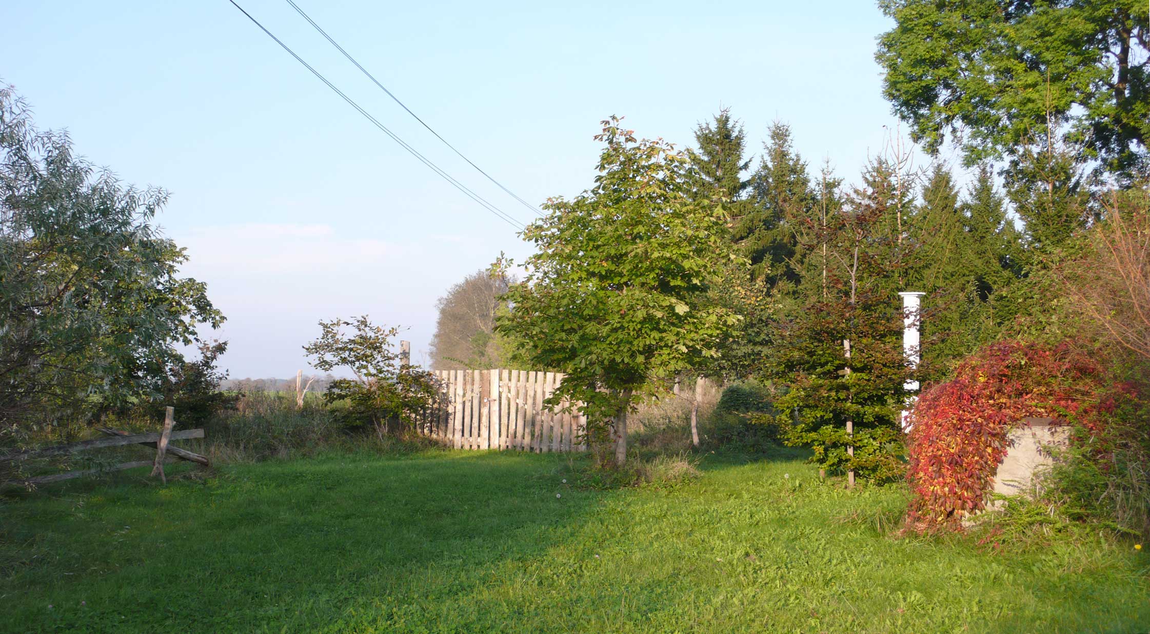dahinter der Park und der Garten wieder mit dem Weg über die Felder