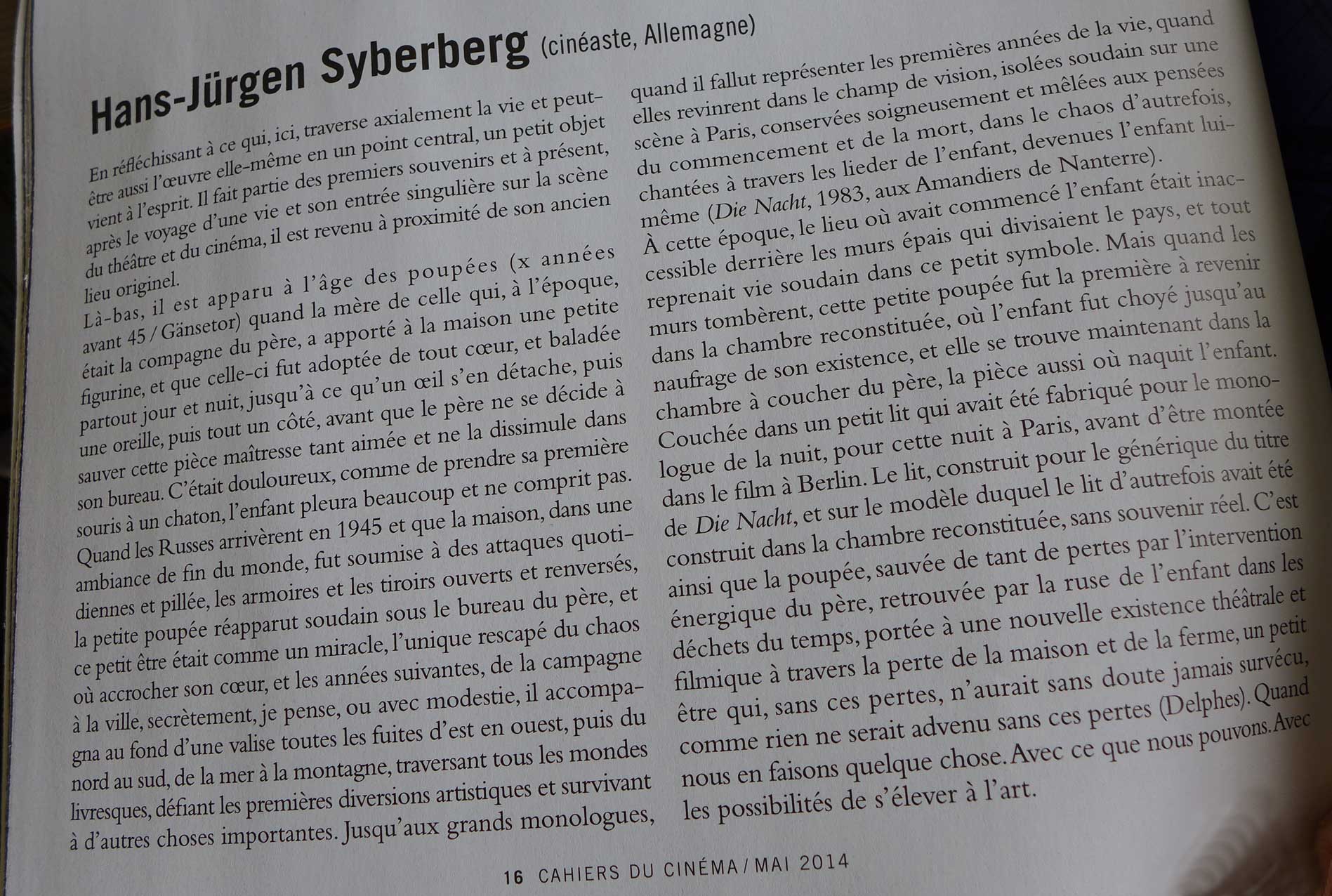 Your answer can take any form you wish: text, photo, drawing, image analysis, or, if you like, an interview. We must receive your answer by e-mail (700@cahiersducinema.com) or regular mail by Monday, April 14.