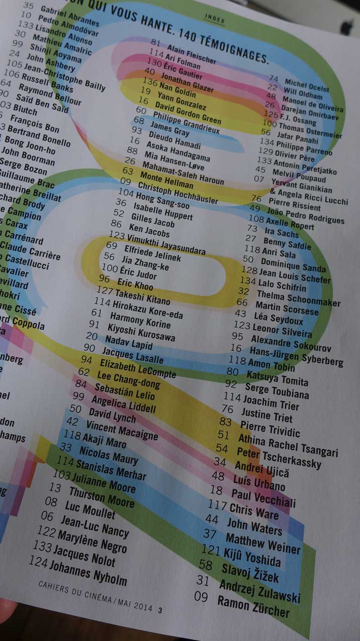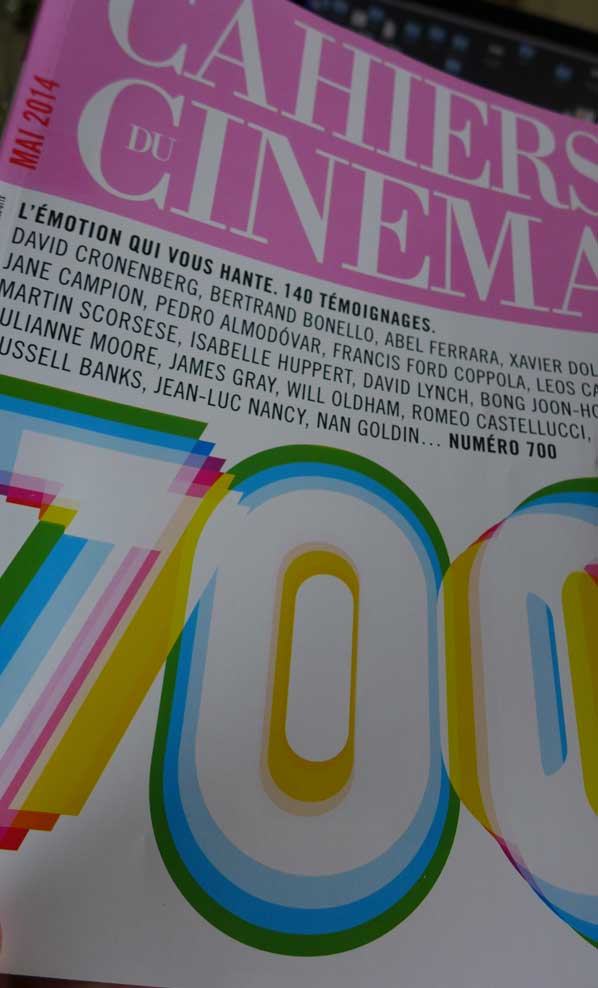 Next May, Cahiers du Cinéma will publish its 700th issue. To celebrate the event, we are soliciting contributions from filmmakers, performers, technicians, visual artists, philosophers, writers, musicians, etc. from all over the world.