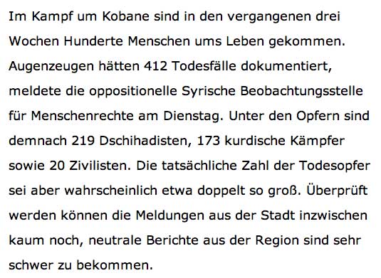 Andrew Tabler vom „Washington Institute for Near East Policy“ spricht in der „Washington Post“ Klartext: „Es geht um die Stabilisierung des Irak, nicht um Minderheiten. Es sieht so aus, dass Syrien zweitrangig ist und die Luftschläge ohne eine erkennbare politische oder humanitäre Strategie ausgeführt werden.