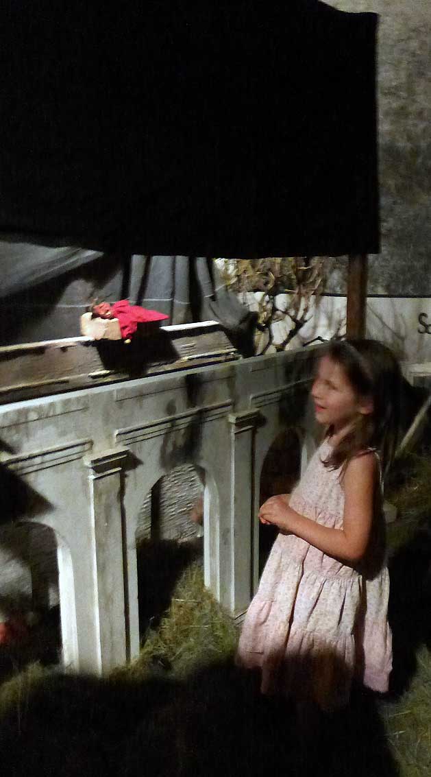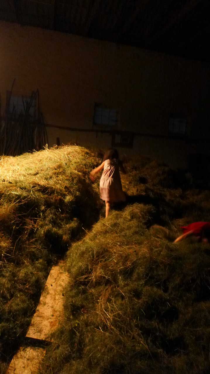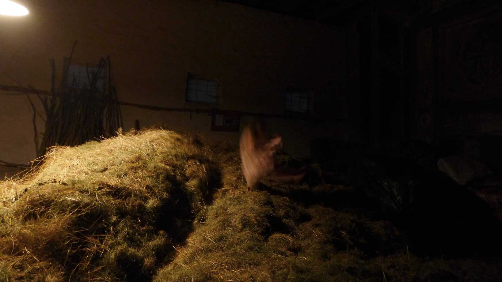 Und dann fragt die Maria und was ist mit denen da unten, die heruntergefallenen, im Heu, und als sie hört, die schlafen schon, gingen auch alle anderen so lansagsm ins ruhige Betthier Doch der Teufel schläft nicht>>>.