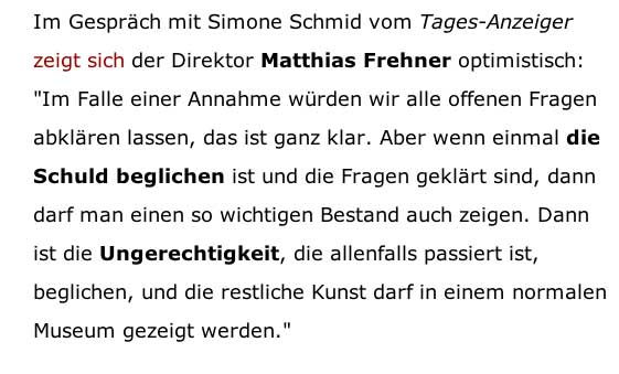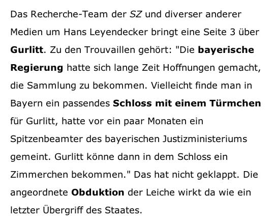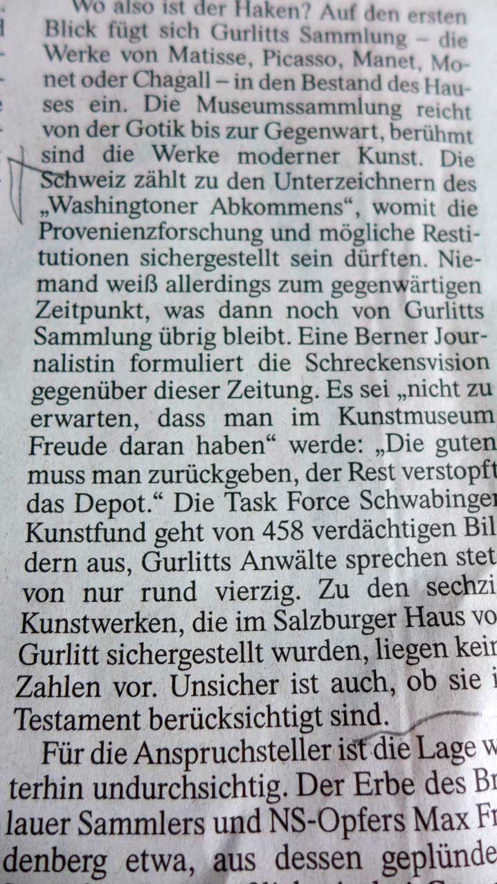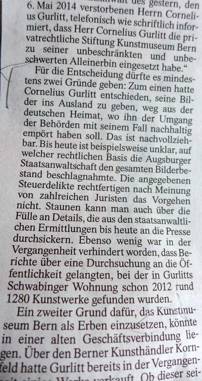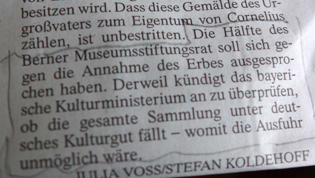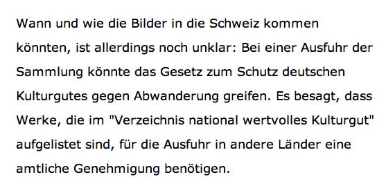 Kultsmin. überprüfen, Kulturgut und damit Ausfuhr unmöglich- nur für Gurlitt aber nicht für Juden. Wieder der Rassismus der Sonderweg-Behandlung, sie lernen nichts oder beugen sich der Macht - der Geschäfte?