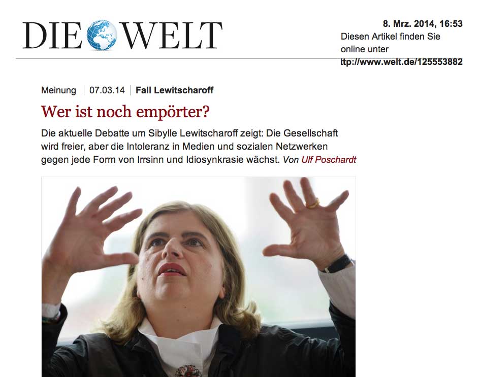 Die aktuelle Debatte um Sibylle Lewitscharoff zeigt: Die Gesellschaft wird freier, aber die Intoleranz in Medien und sozialen Netzwerken gegen jede Form von Irrsinn und Idiosynkrasie wächst. Von Ulf Poschardt