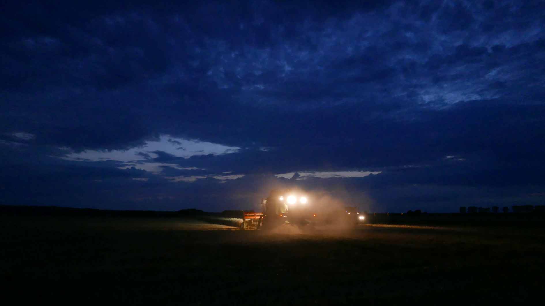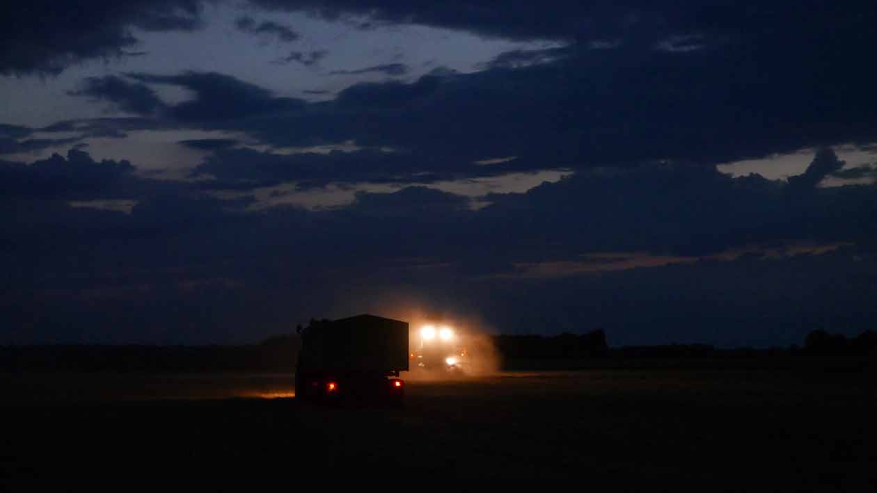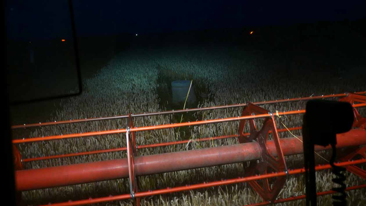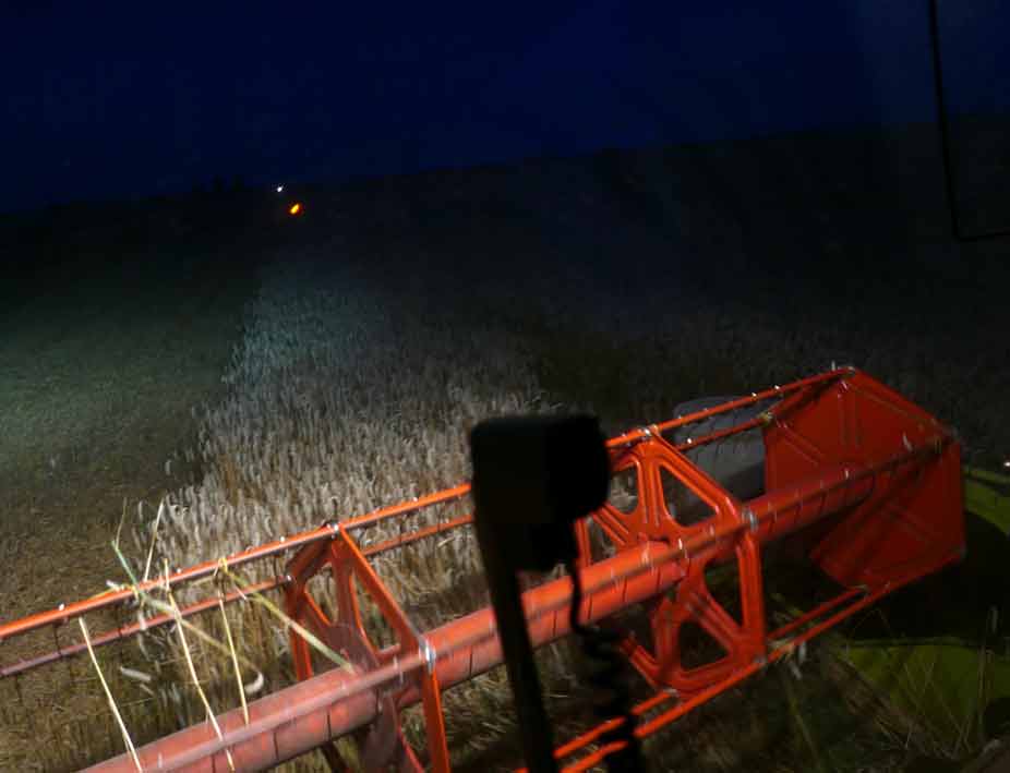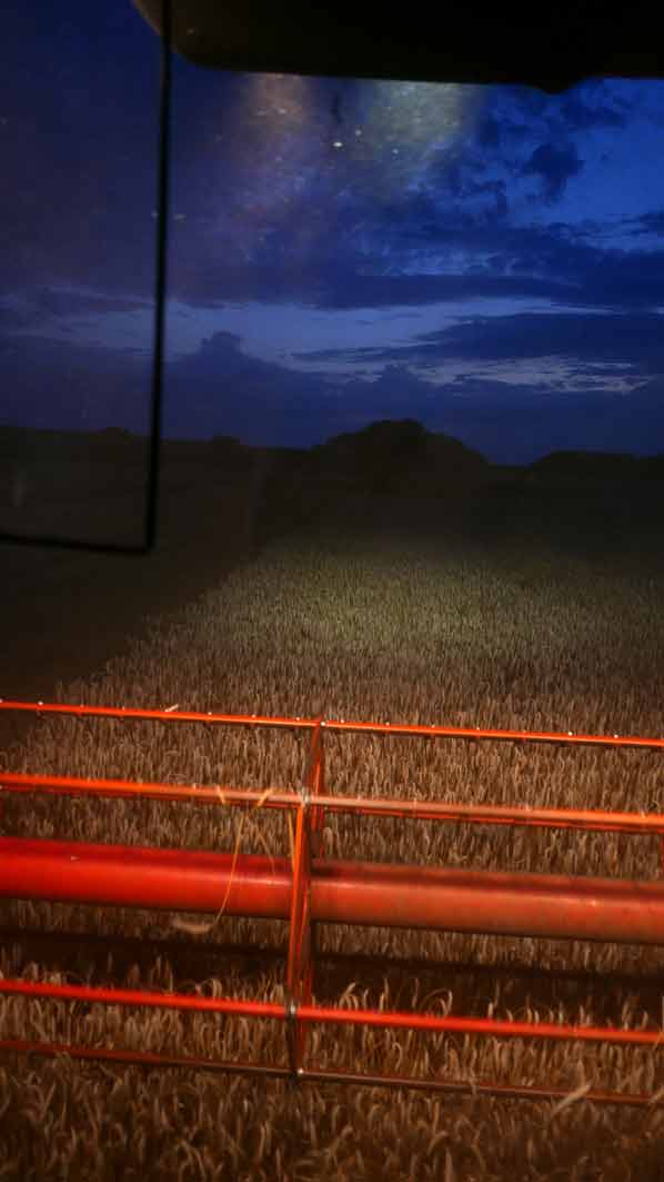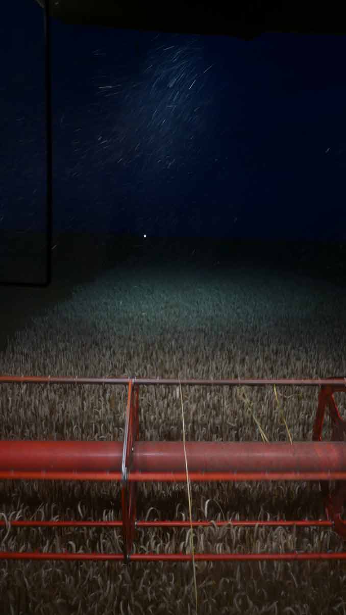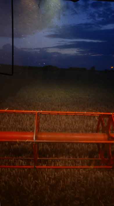 Der Mann auf dem Mähdrescher hat viel Zeit zu denken, Tag und Nacht, wenn er da fährt immer auf und ab, allein, die Runden.