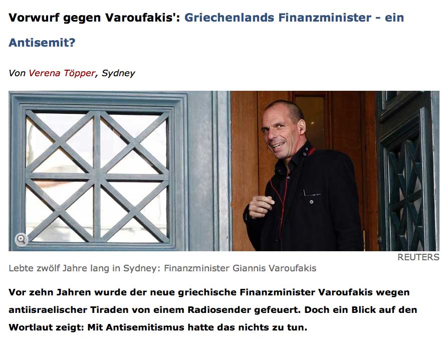 In Israel wurde der nun ausgegrabene Nahost-Kommentar des Finanzministers relativ gelassen aufgenommen. Grund zur Sorge bestünde wohl nicht, schreibt die "Times of Israel": Das sei "typisch linke Kritik", erklärt dort ein Politologe - und der Vorfall liege lange zurück. "Heute sind die meisten Mitglieder von Syriza deutlich moderater", zitiert die Zeitung Victor Eliezer vom Zentralvorstand der jüdischen Gemeinden in Griechenland.