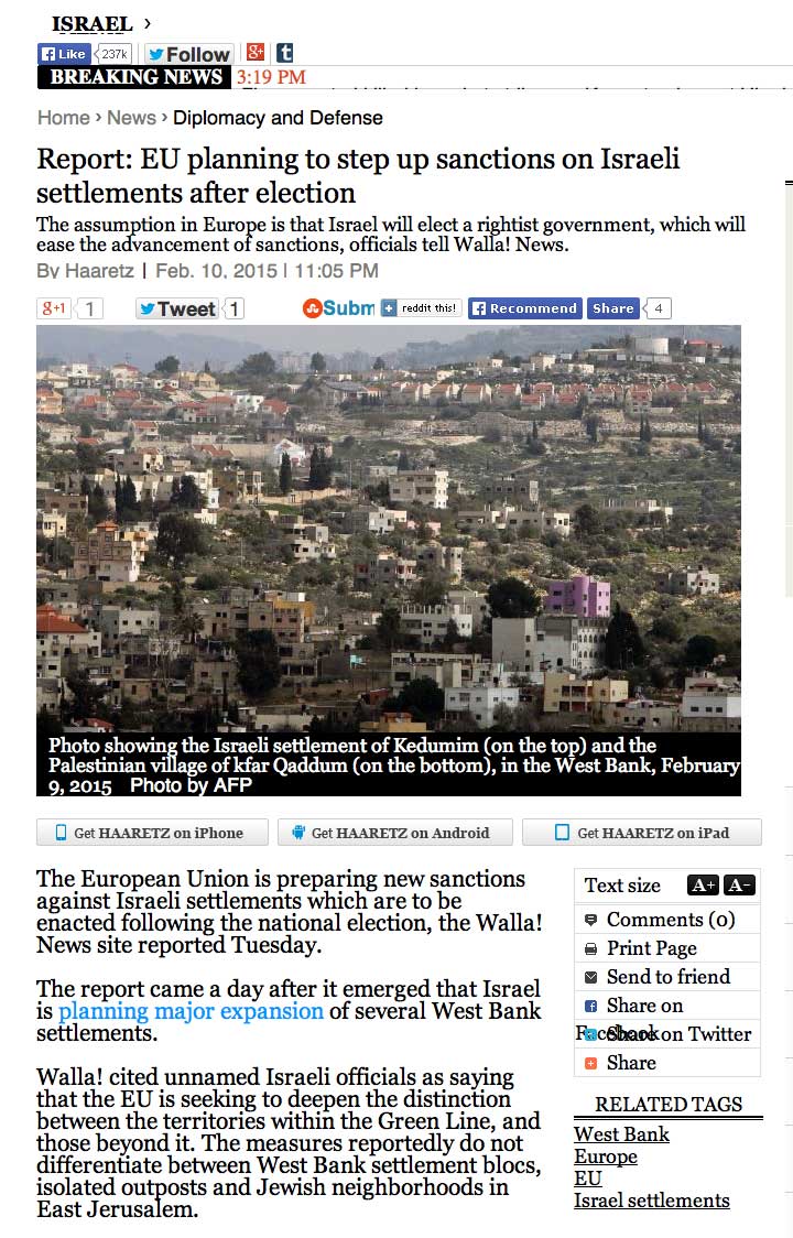 Um jeweils auf die andere Seite zu kommen, müssten sie kilometerweit zum nächsten Checkpoint laufen und dort erniedrigende Durchsuchungen über sich ergehen lassen. "Es ist Sadismus", sagte er. "Erst bauen sie eine Mauer, um die Palästinenser zu isolieren und von dem Land zu trennen, das sie stehlen wollen. Dann machen sie ihnen das Leben unerträglich, indem sie ihnen nicht erlauben, ihr Land zu bewirtschaften. Und dann erklären sie das Land für verlassen." Die Welt schaue tatenlos zu - "und wundert sich, wenn sich einer dieser Palästinenser in die Luft sprengt".