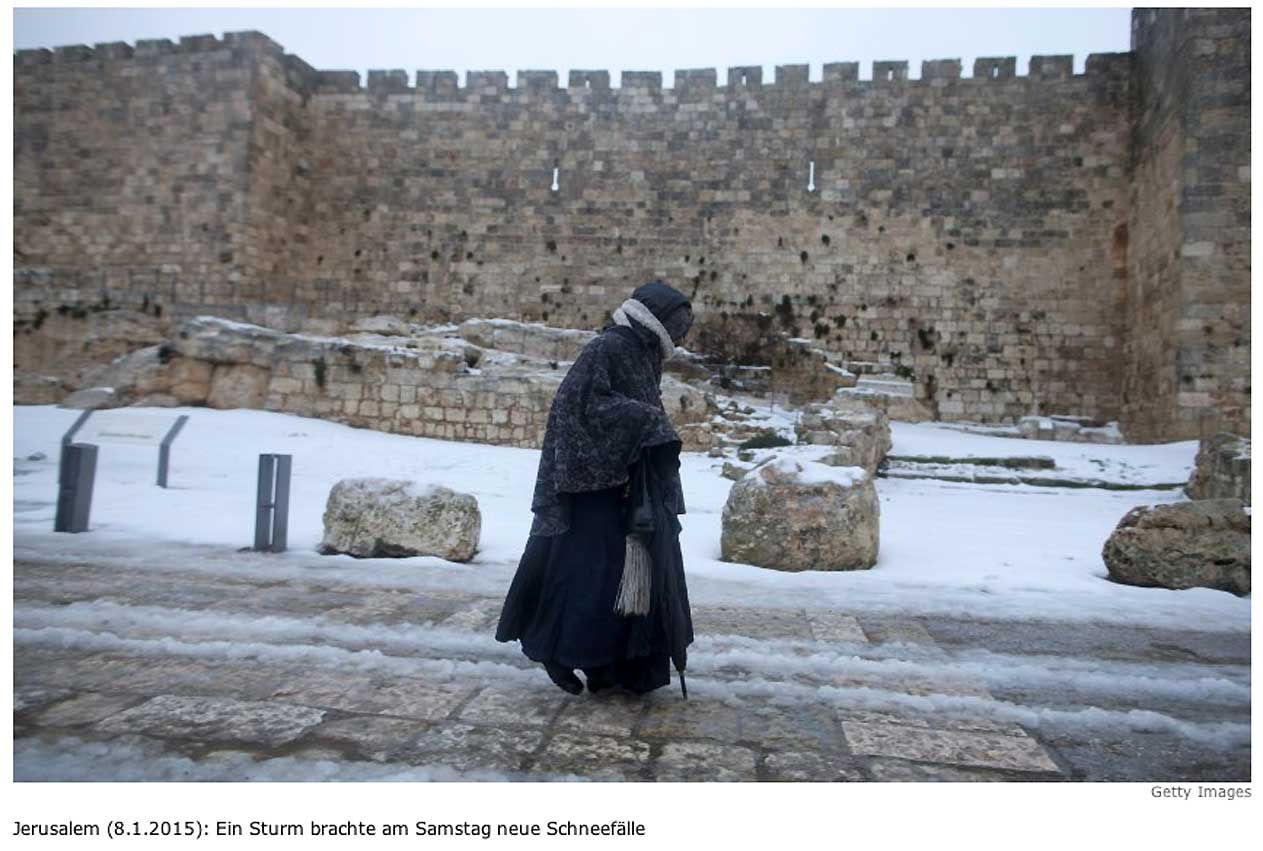 Jerusalem - Ein Sturm hat am Samstag neue Schneefälle in Jerusalem gebracht. Auch andere bergige Gebiete im Norden Israels, den Golanhöhen sowie dem Westjordanland waren mit Schnee bedeckt. Im südlichen Gazastreifen erfroren nach Medienberichten wegen ungewöhnlicher Kälte zwei Babys.