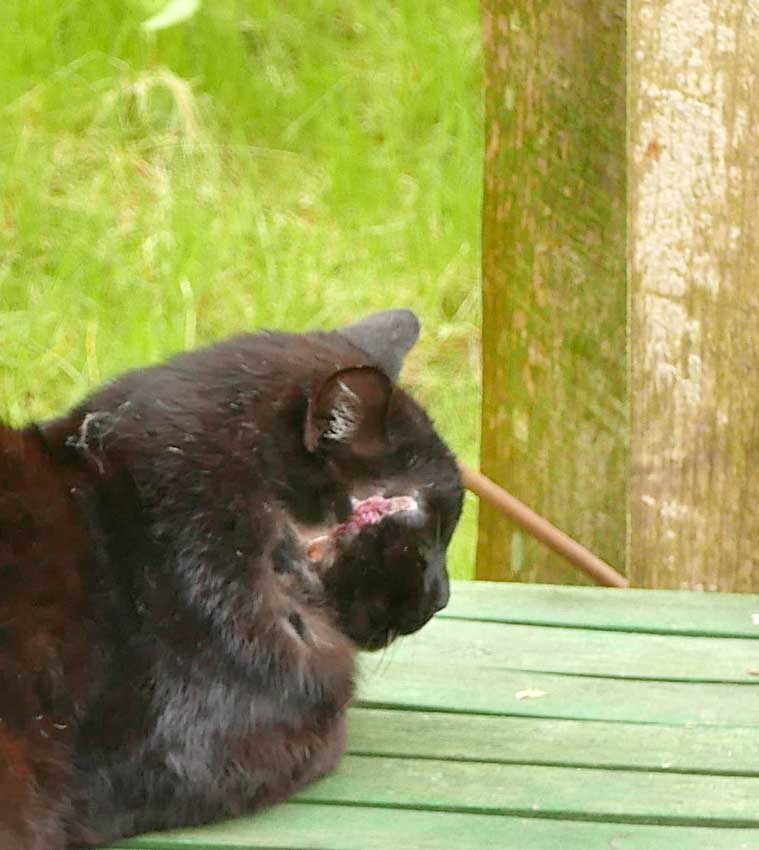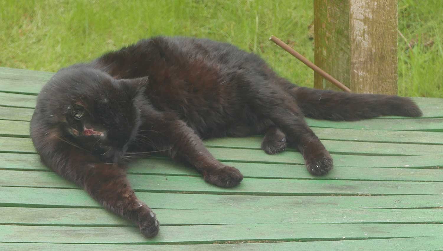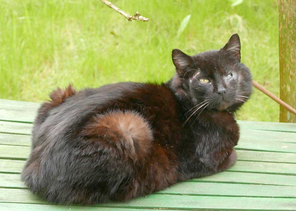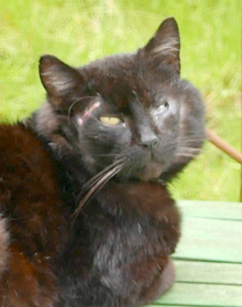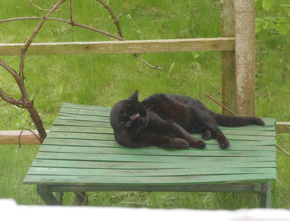 auch sie war zugelaufen, zuerst gebracht und dann weggelaufen, aber wieder da und mit Kindern dann